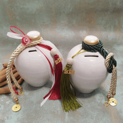 Γούρι 2026 Επιτραπέζιος Κεραμικός Κουμπαράς με μεγάλη Φούντα