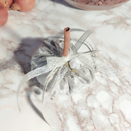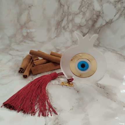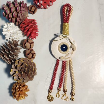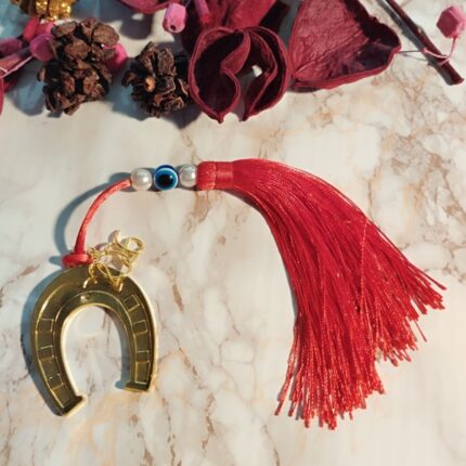 Γούρι Μπρελόκ 2026 με ασημί Μεταλλικό Ρόδι και φούντα