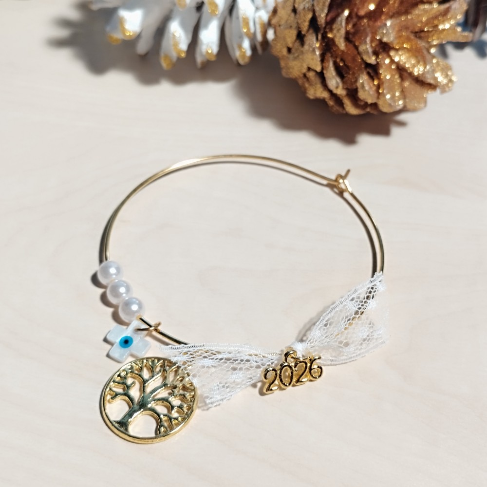 Βραχιόλι Γούρι 2026 χρυσή Βέργα με Δέντρο Ζωής