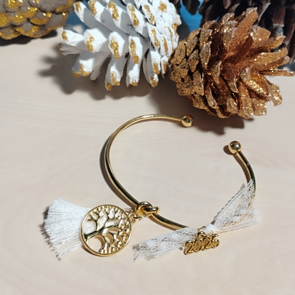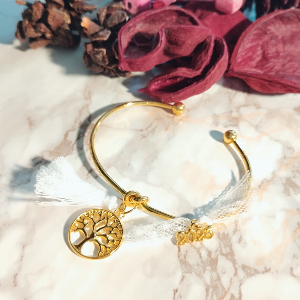 Βραχιόλι Γούρι 2026 χρυσή Βέργα με Κόμπο και Δέντρο Ζώης