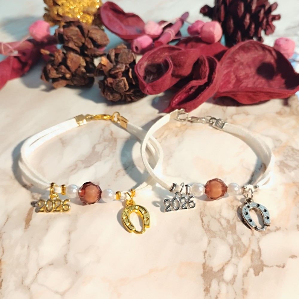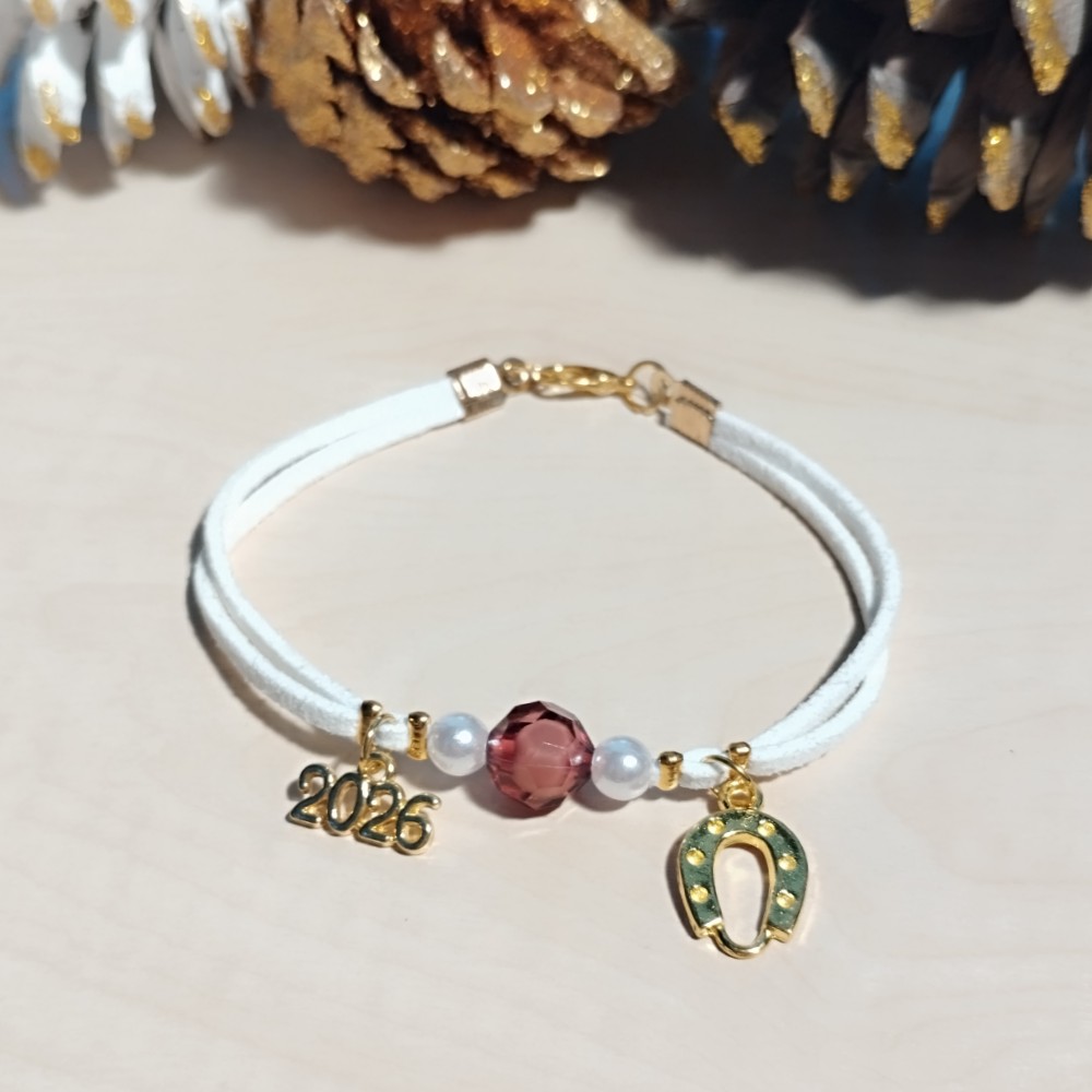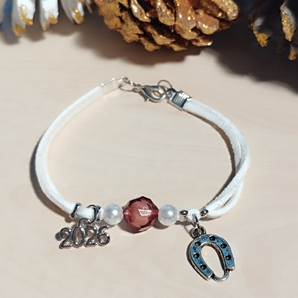 Οικονομικό χειροποίητο Γούρι 2026 βραχιόλι από σουέτ δερμάτινο κορδόνι με σταθερό κούμπωμα.