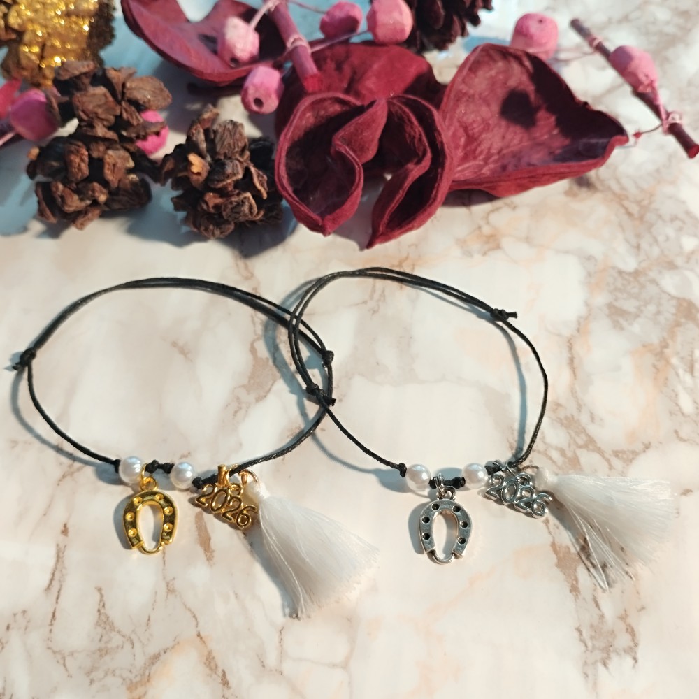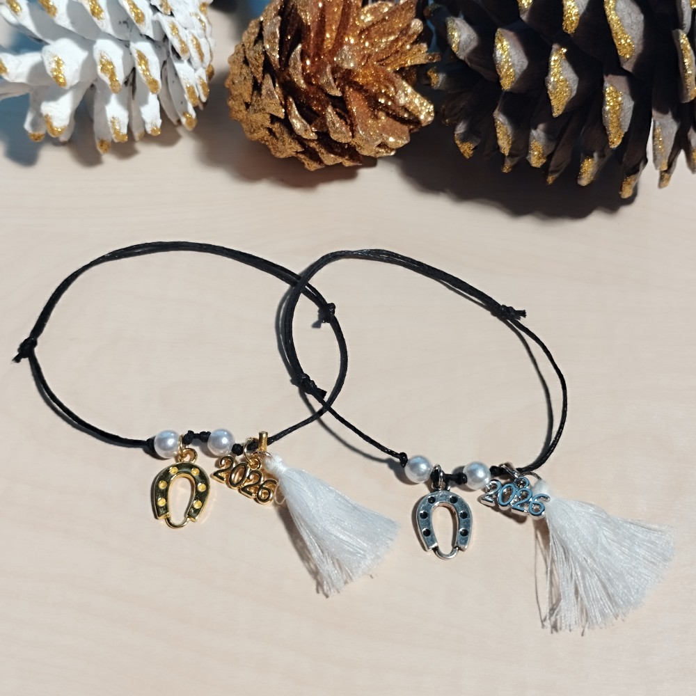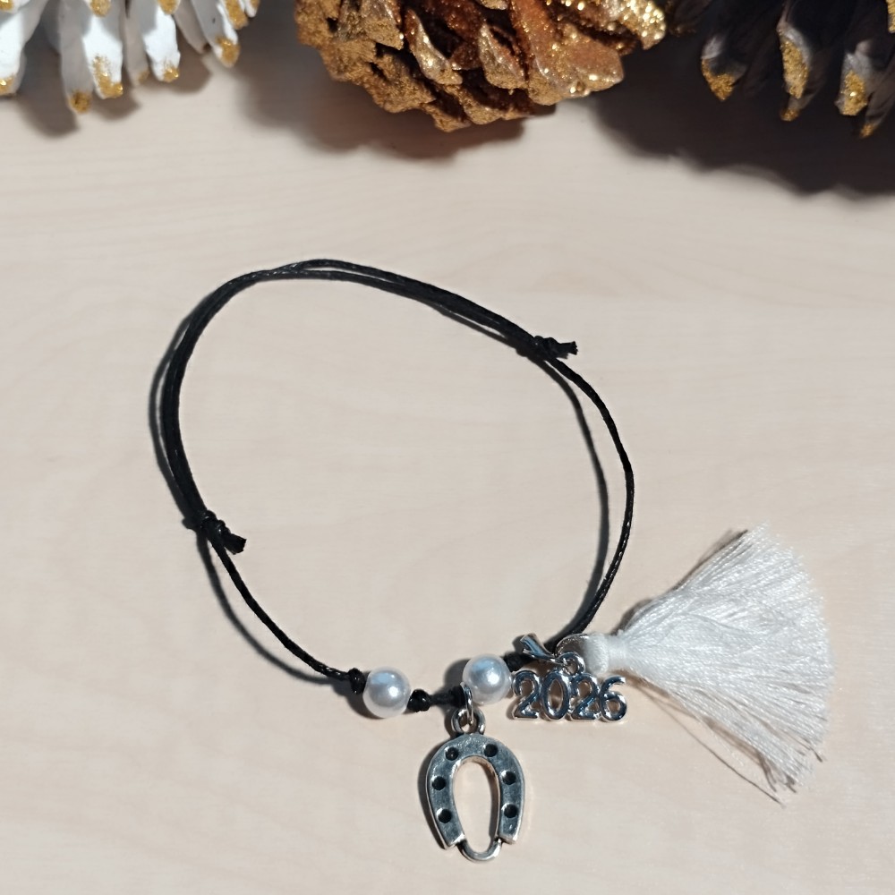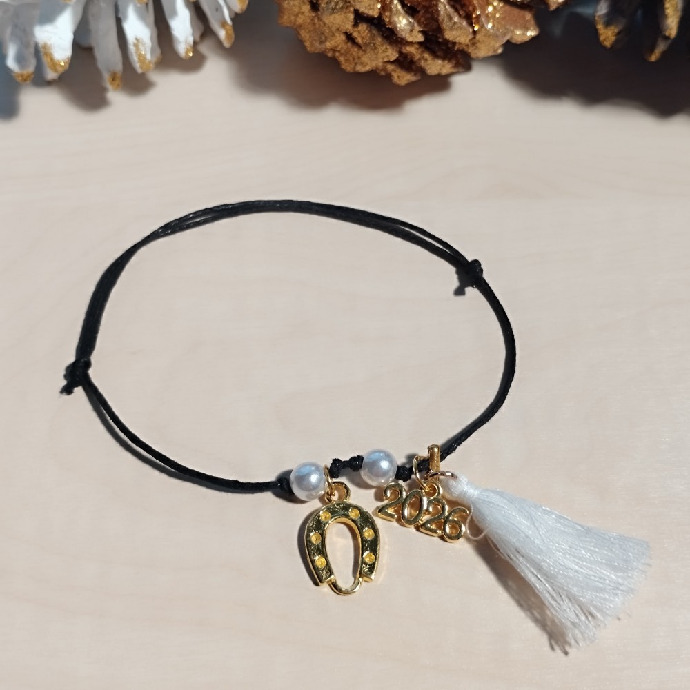 Οικονομικό χειροποίητο Γούρι 2026 βραχιόλι από μαύρο κορδόνι, αυξομειούμενο.