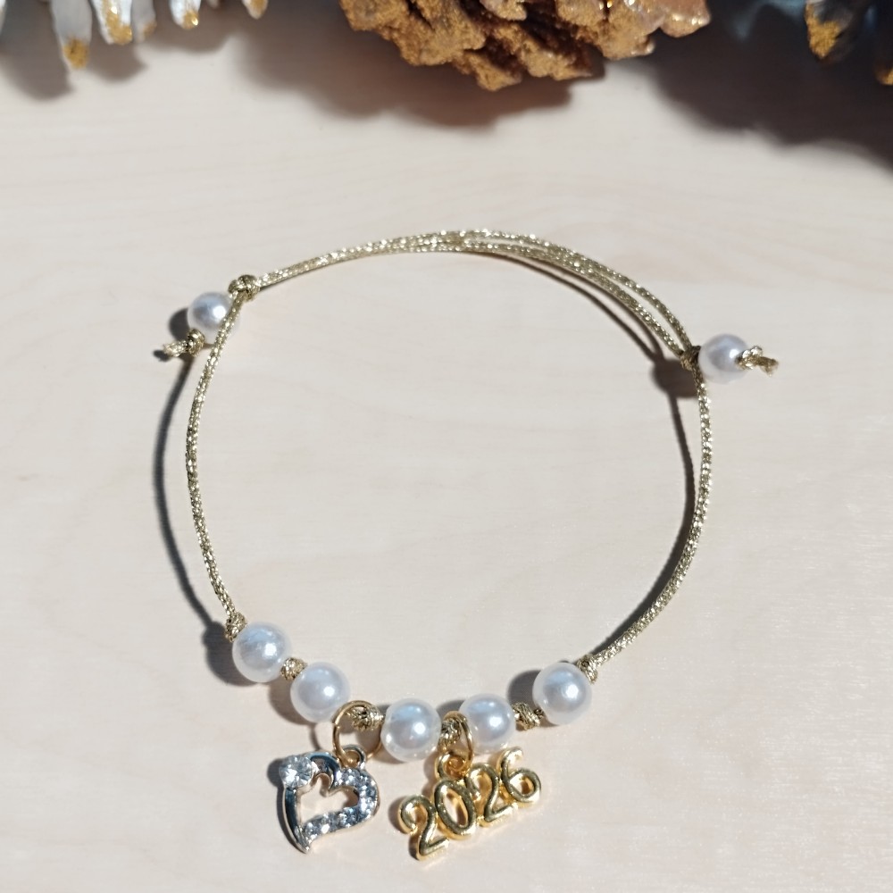 Οικονομικό χειροποίητο Γούρι 2026 βραχιόλι με γυαλιστερό κορδόνι, αυξομειούμενο.