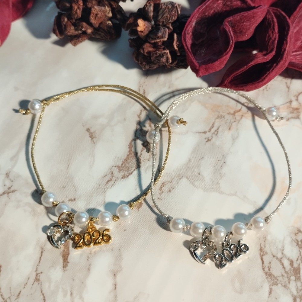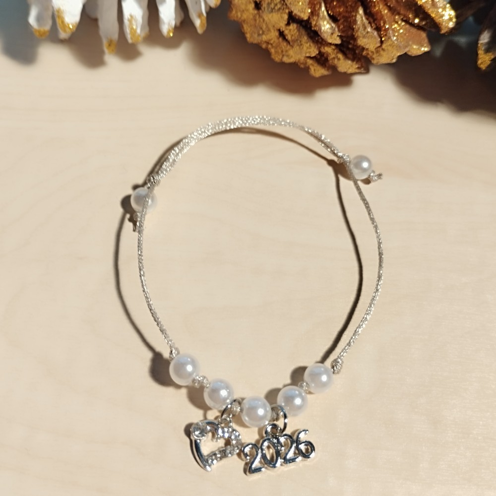 Βραχιόλι Γούρι 2026 με Γυαλιστερό κορδόνι Πέρλες και Αστέρι