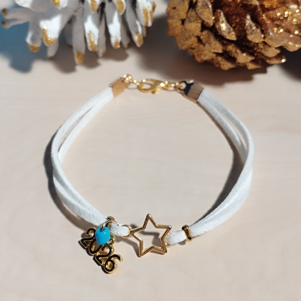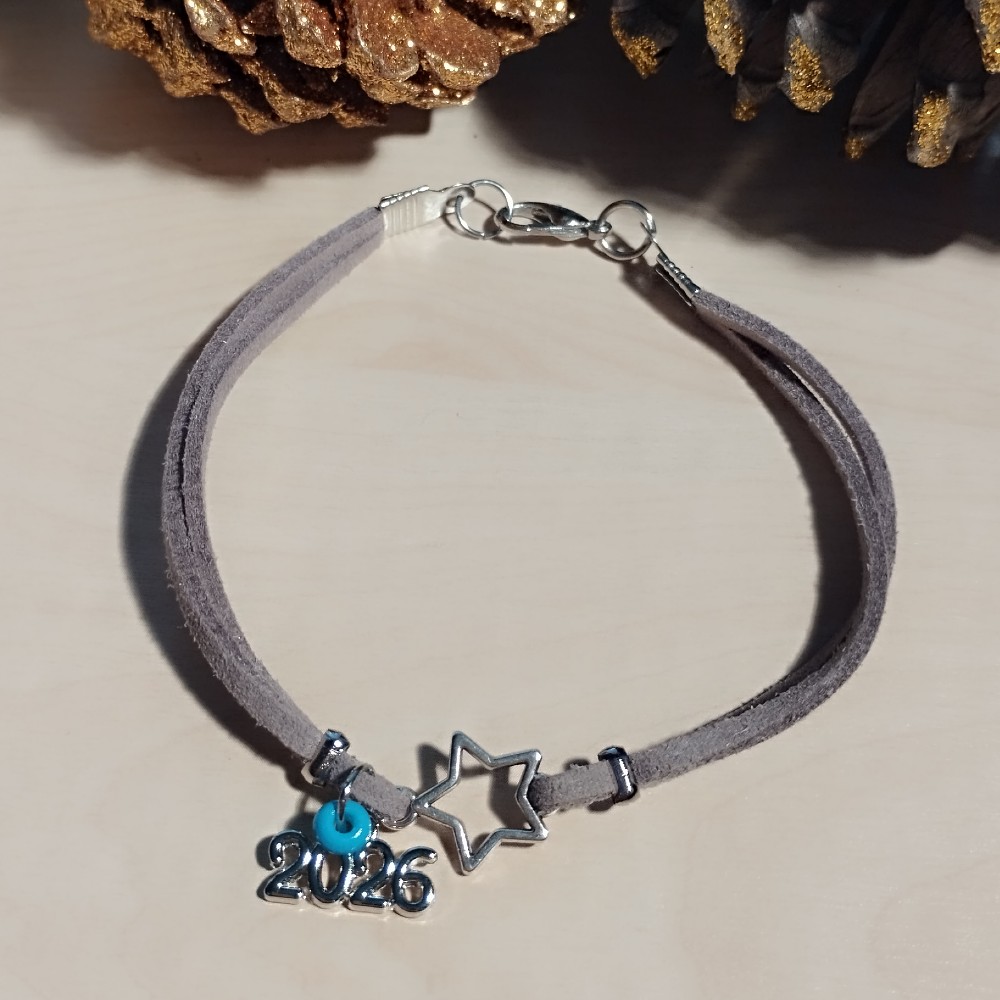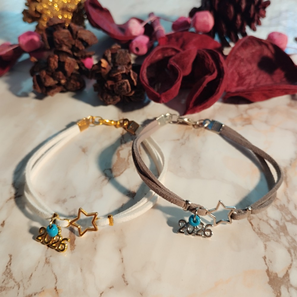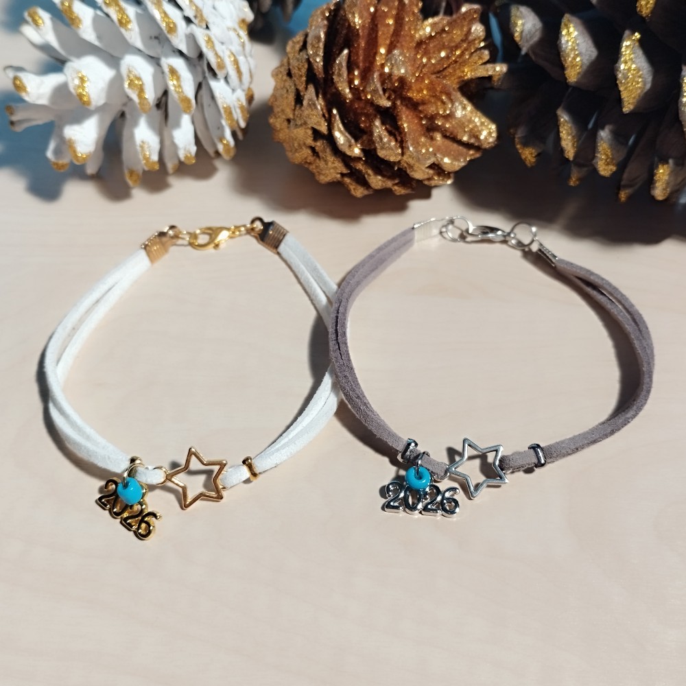 Οικονομικό χειροποίητο Γούρι 2026 βραχιόλι με επίχρυσο ή επάργυρο αστέρι σε σουέτ δέμα.
