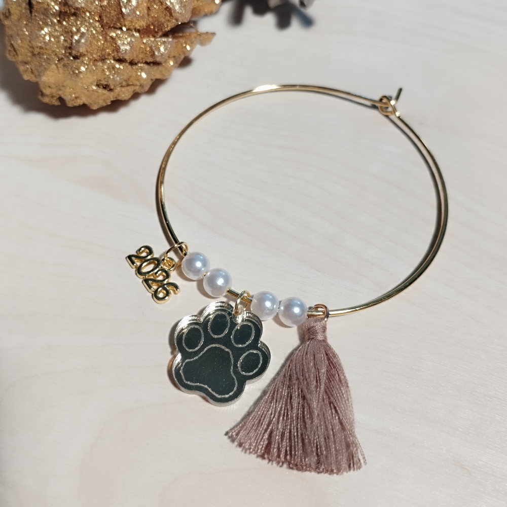 Βραχιόλι Γούρι 2026 χρυσή Βέργα με χρυσή Πλέξι Πατούσα Σκύλου