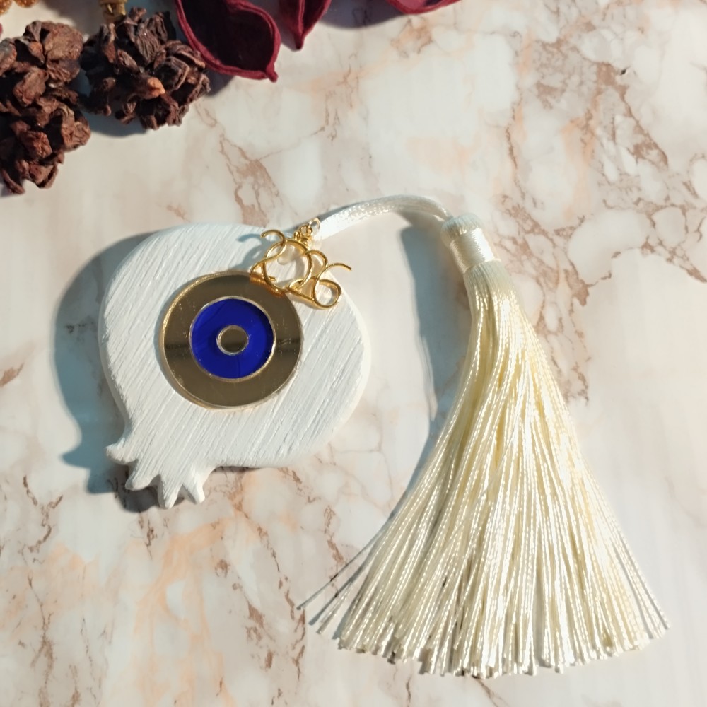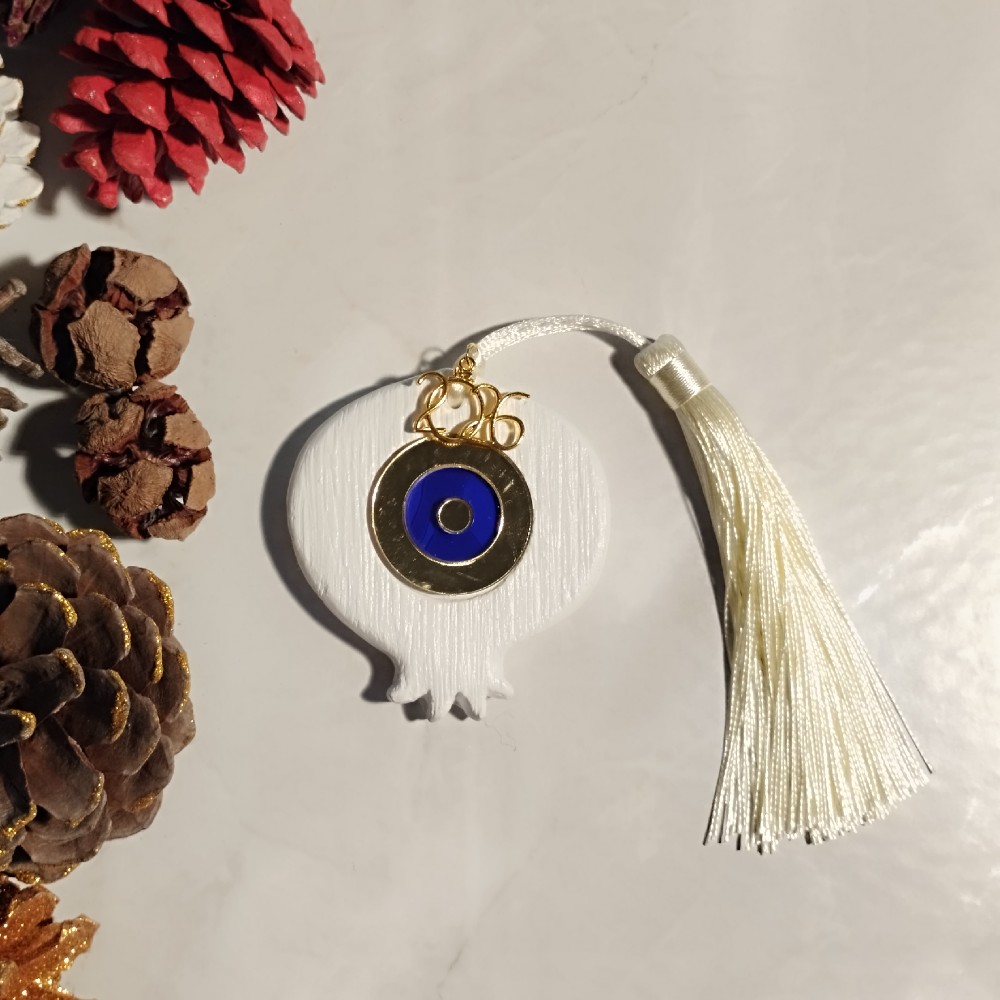Γούρι 2026 Επιτραπέζιο Κεραμικό Ρόδι με Πλέξι Ακρυλικό Μάτι