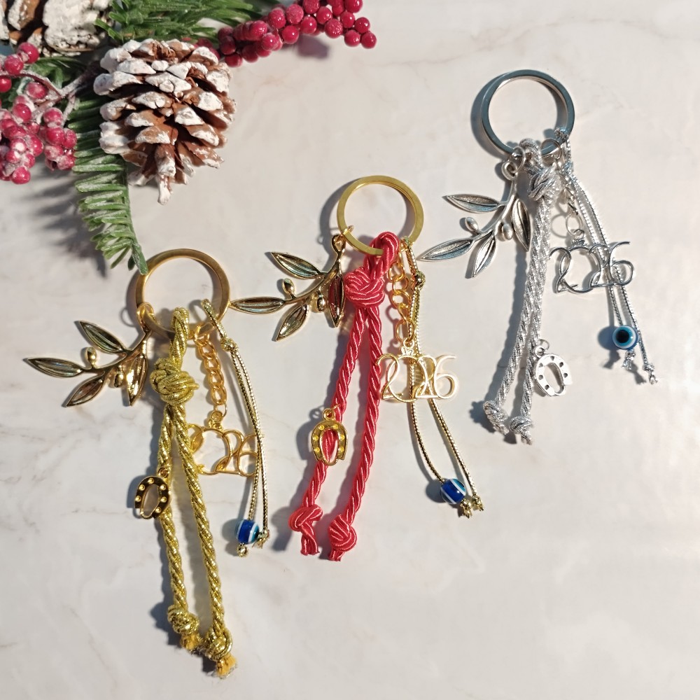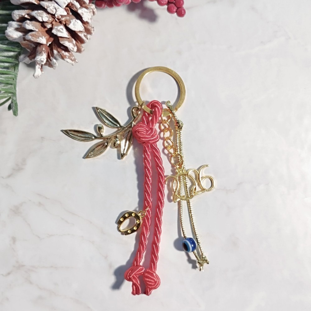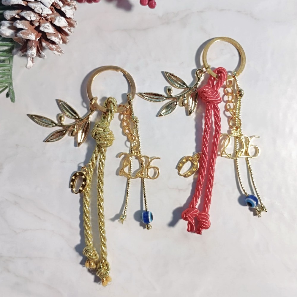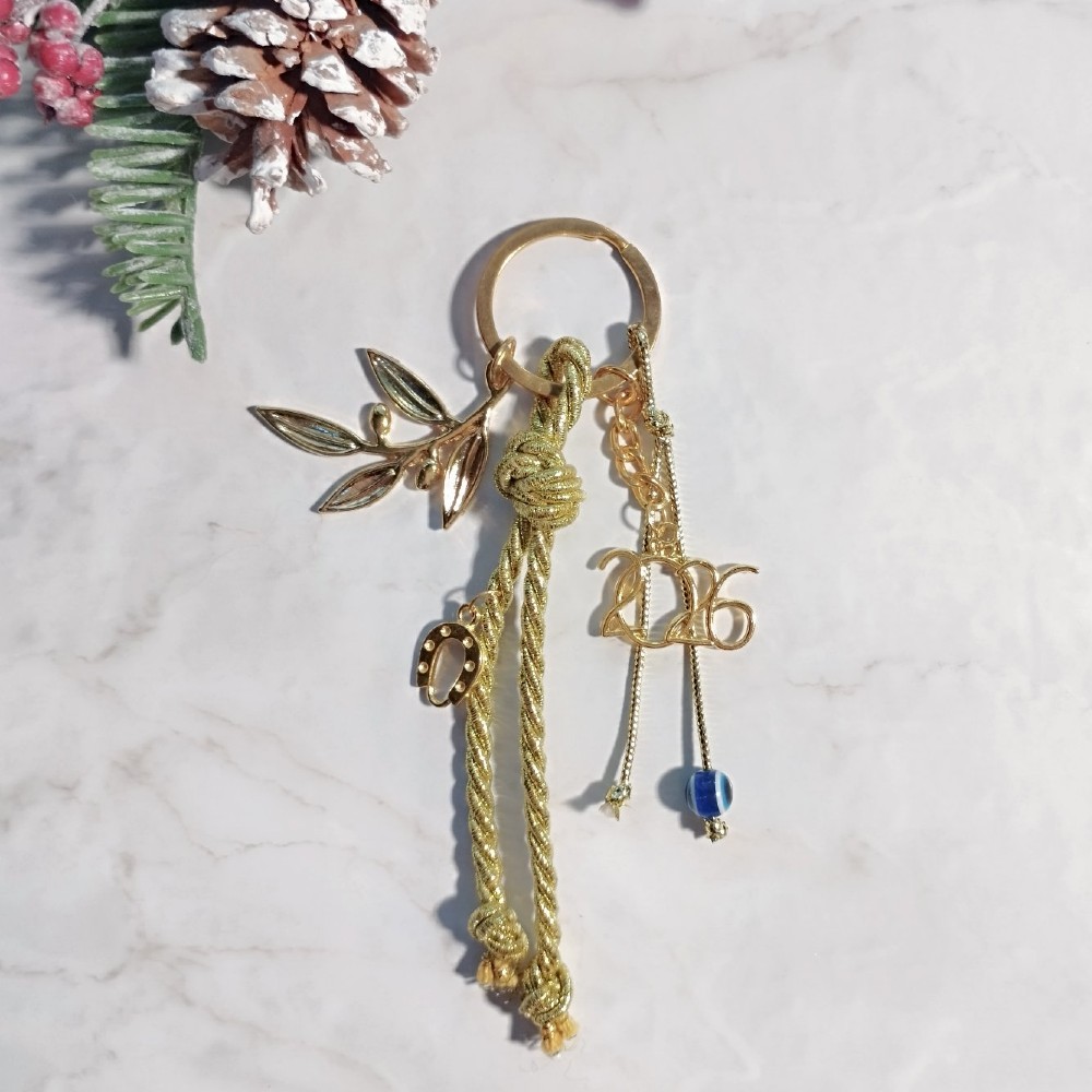 Χειροποίητο, οικονομικό γούρι μπρελόκ 2026 με χρυσό κρίκο.