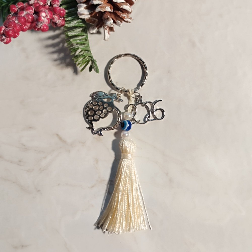 Χειροποίητο, οικονομικό γούρι μπρελόκ 2026 με ασημί κρίκο.