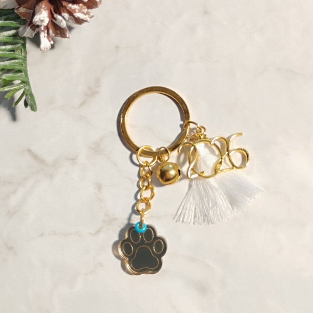 Γούρι Μπρελόκ 2026 με χρυσό κορδόνι και χρυσή Πλέξι Πατούσα Σκύλου