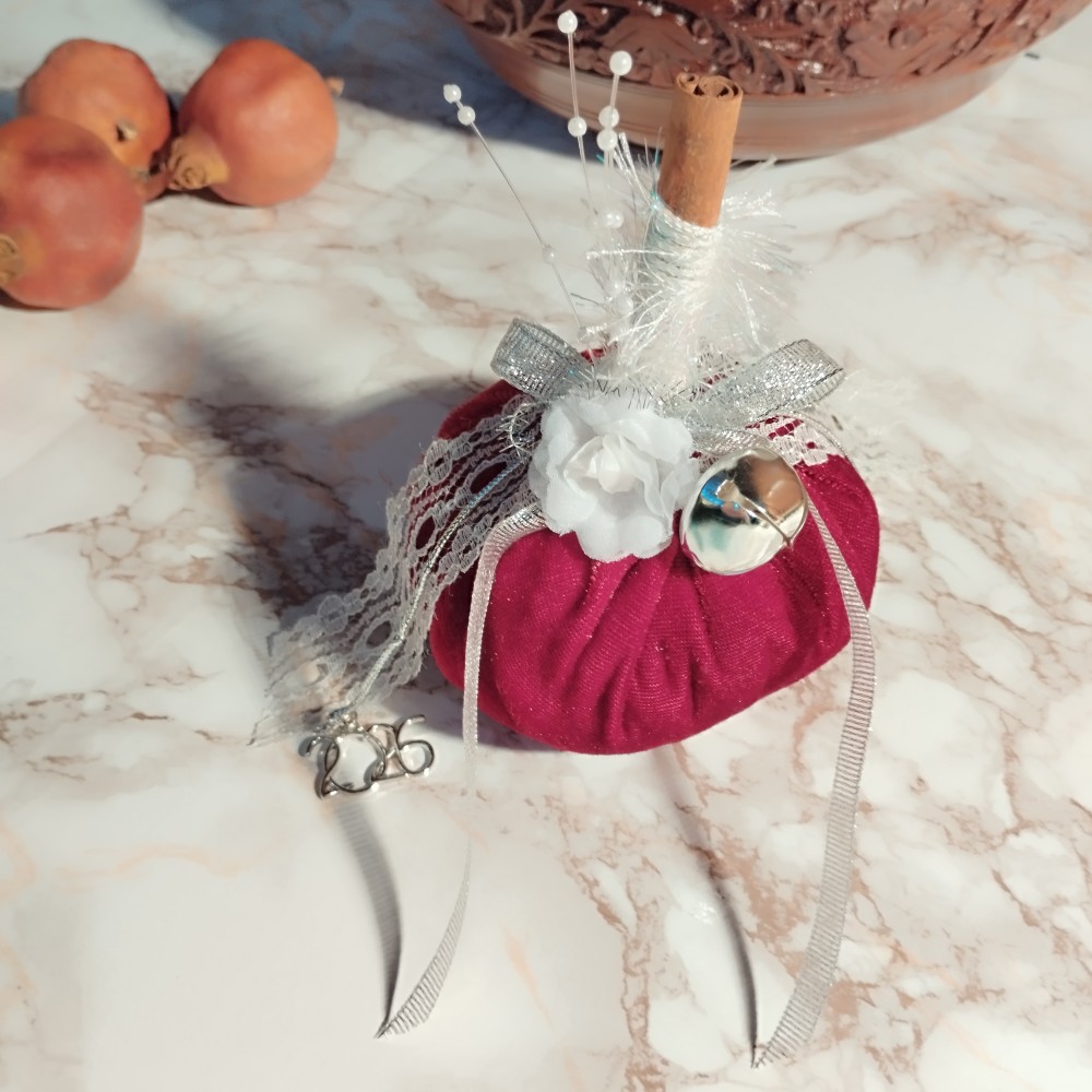 Γούρι 2026 Κολοκύθα Μεσαία Βελούδο Μπορντό με ασημί Ιριδίζον Νήμα