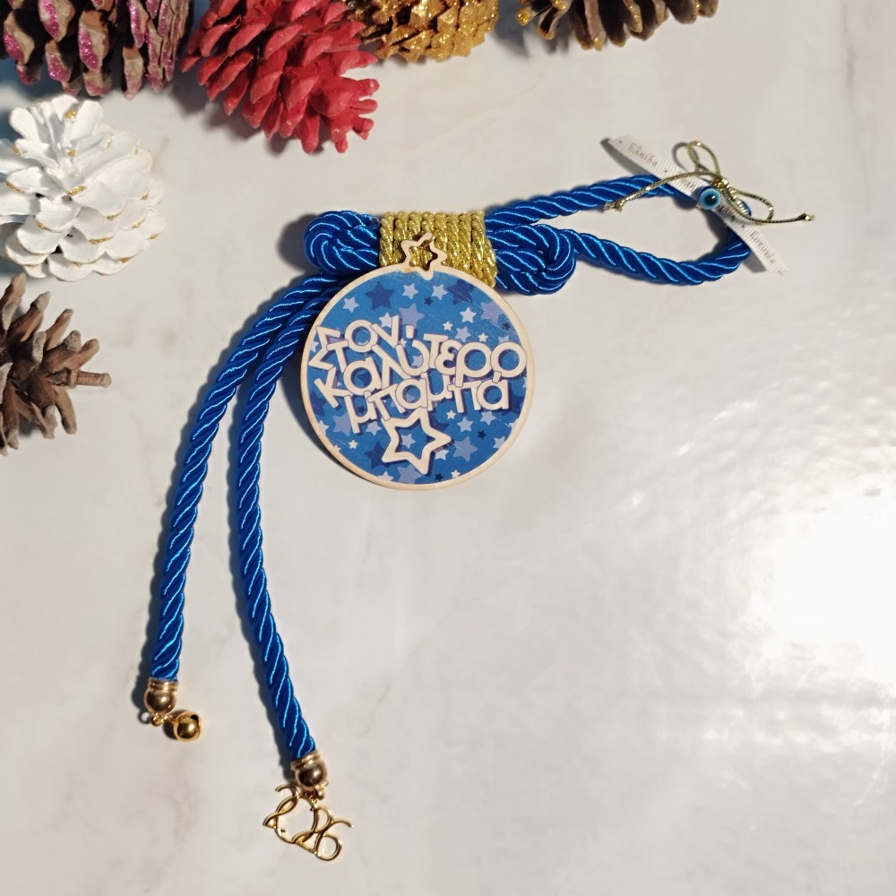 Χειροποίητο, οικονομικό, κρεμαστό γούρι 2026 με ξύλινο στοιχείο “ΣΤΟ ΚΑΛΥΤΕΡΟ ΜΠΑΜΠΑ”.