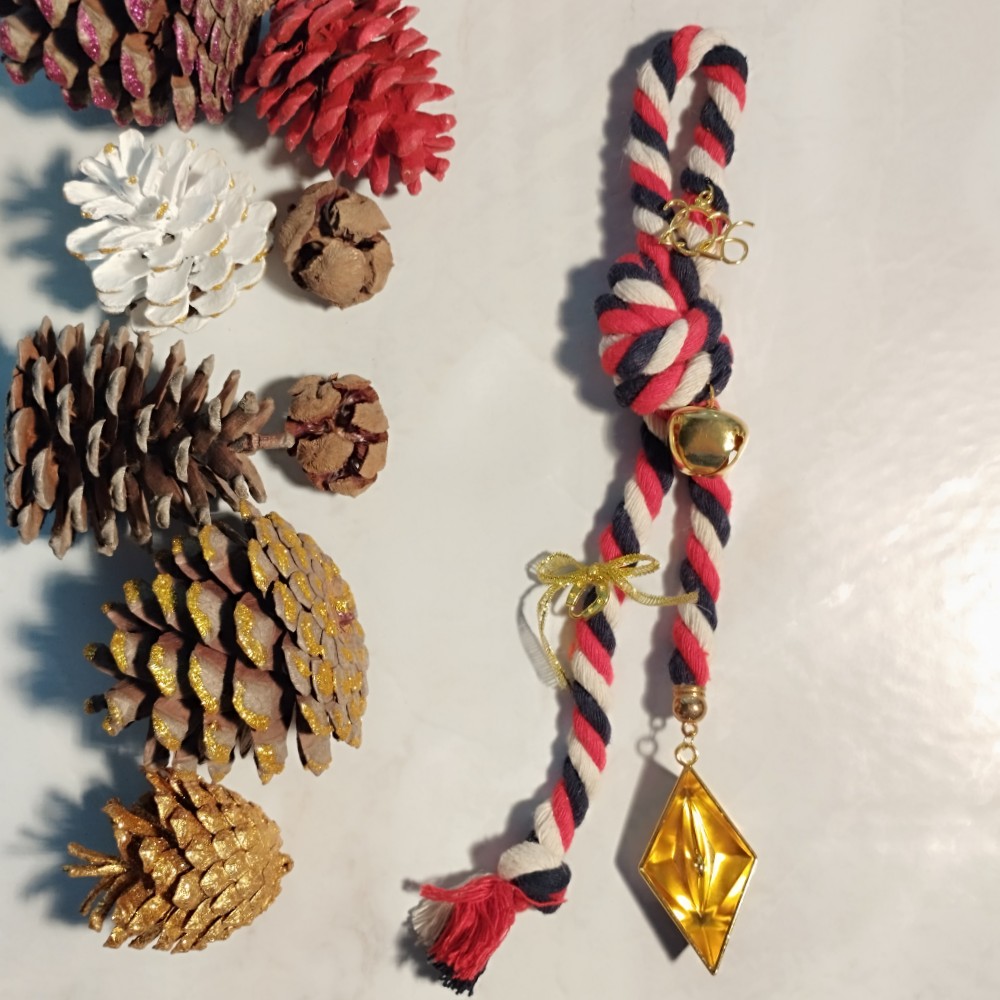 Χειροποίητο, οικονομικό, κρεμαστό γούρι 2026 με γυαλιστερό χρυσό καραβάκι.