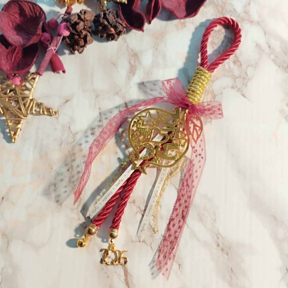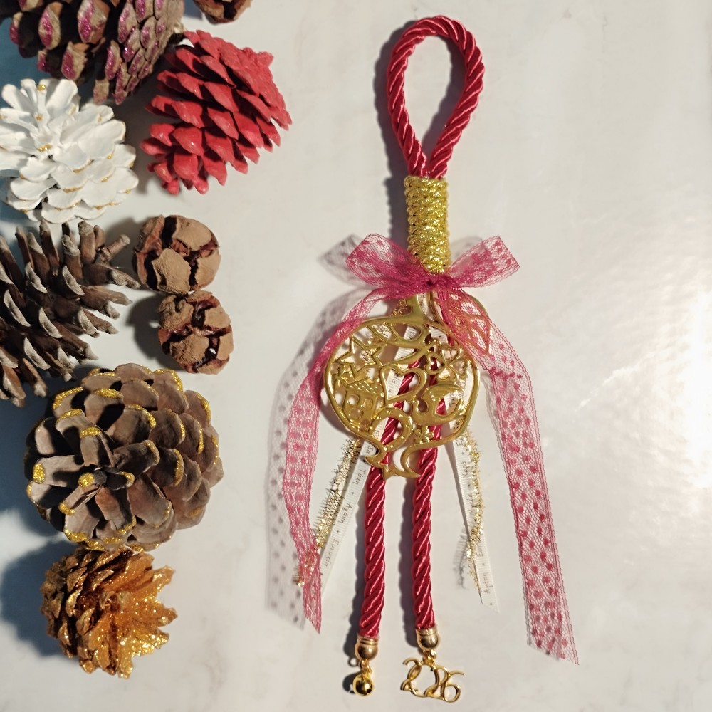 Χειροποίητο, οικονομικό γούρι 2026 με μεγάλο μεταλλικό Ρόδι σε χρυσό χρώμα.