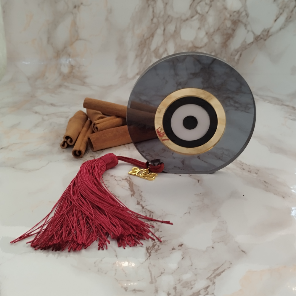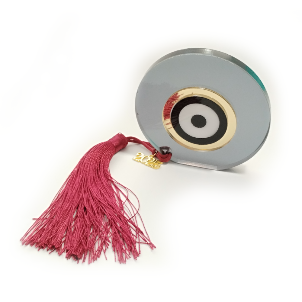 Γούρι 2026 Επιτραπέζιο Πλέξι Στρογγυλό Μάτι σε γκρι φιμέ