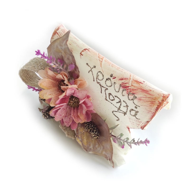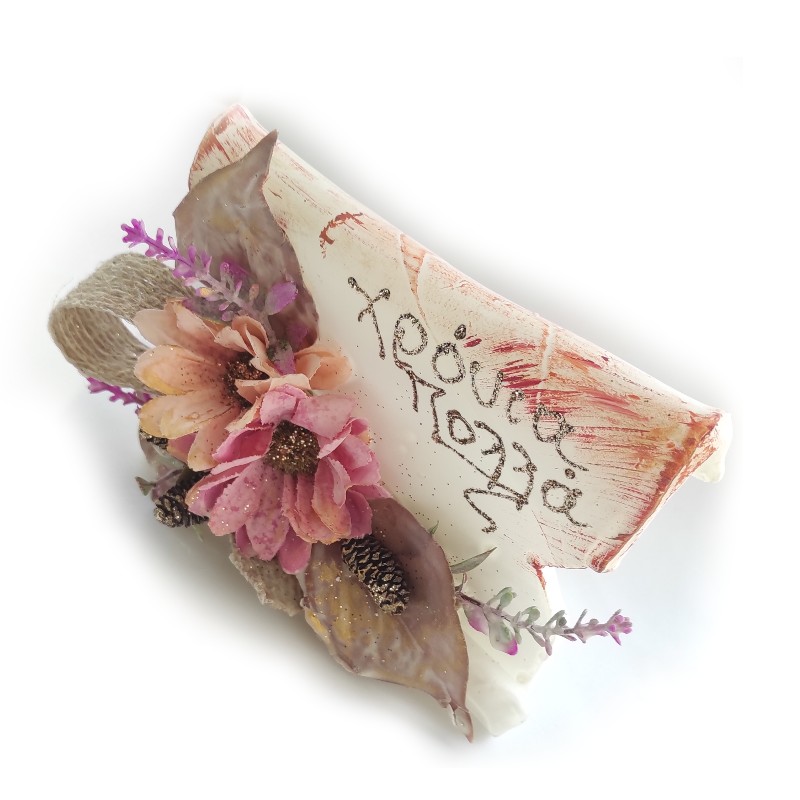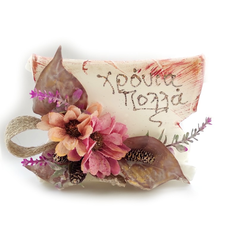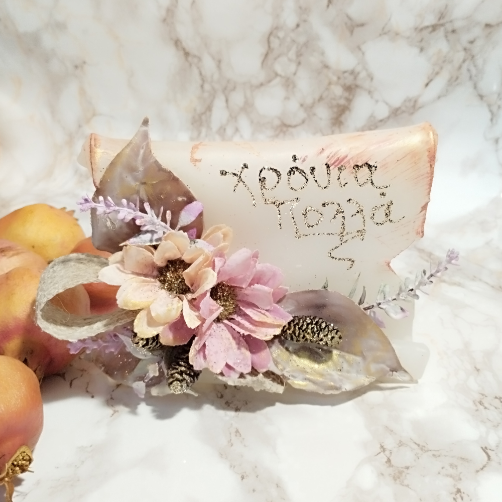 Διακοσμητικό, οικονομικό, χειροποίητο, αρωματικό κερί σε σχήμα πάπυρος με ευχή “Χρόνια Πολλά”.