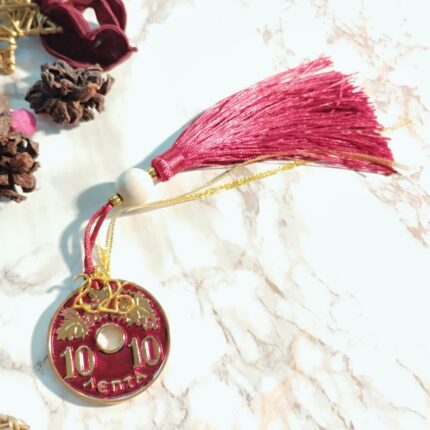 Γούρι 2026 Επιτραπέζιο με Μεγάλη Μεταλλική μπορντό- χρυσή Δεκάρα