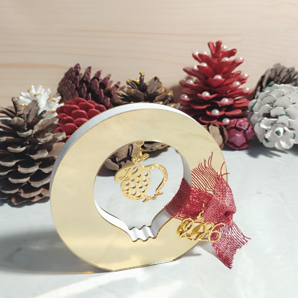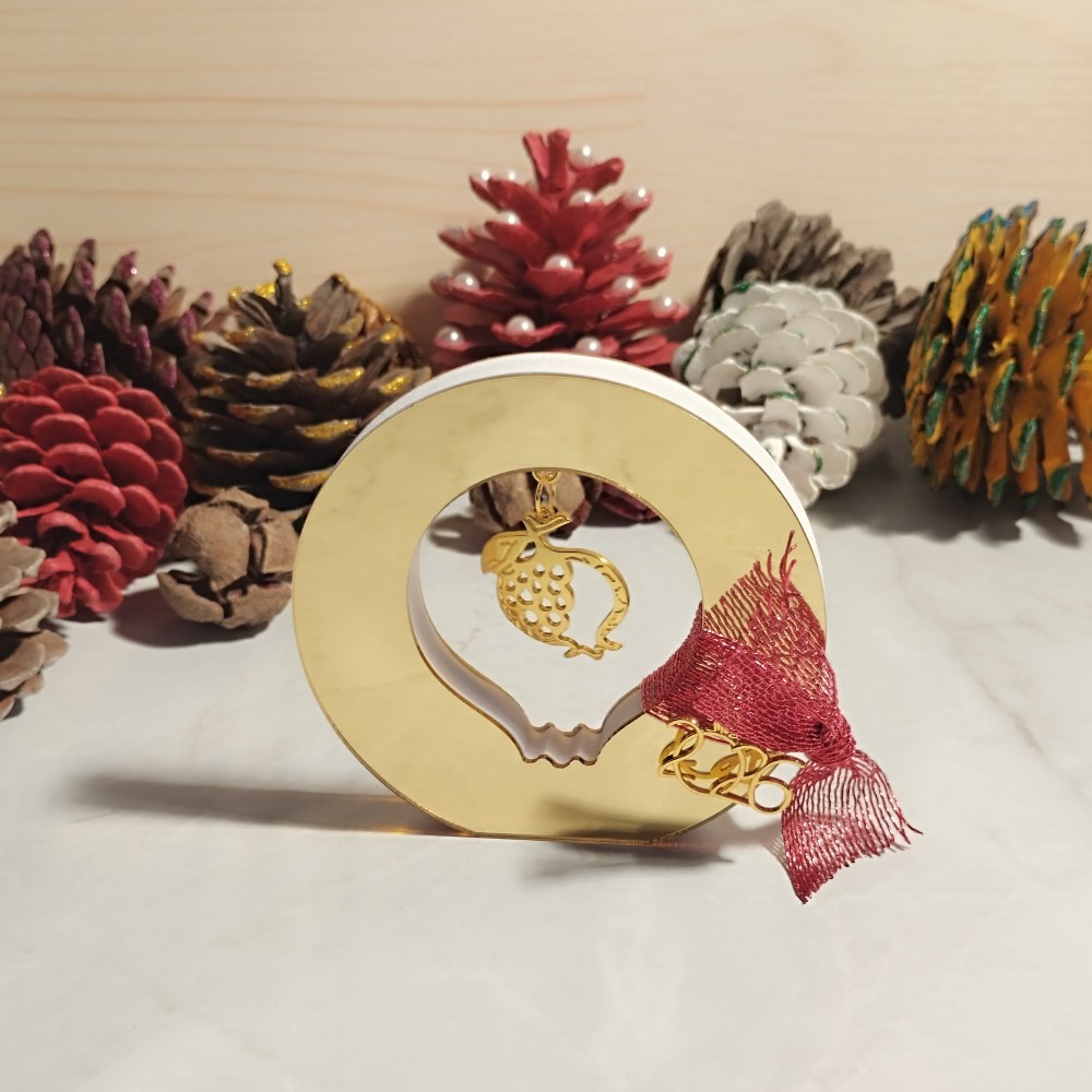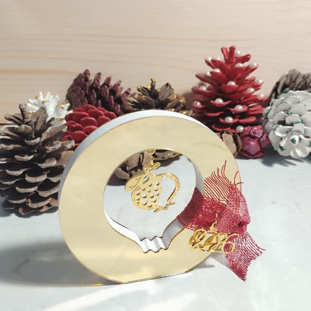 Γούρι 2026 Επιτραπέζιο χρυσό Πλέξι με μεταλλικό χρυσό Ρόδι