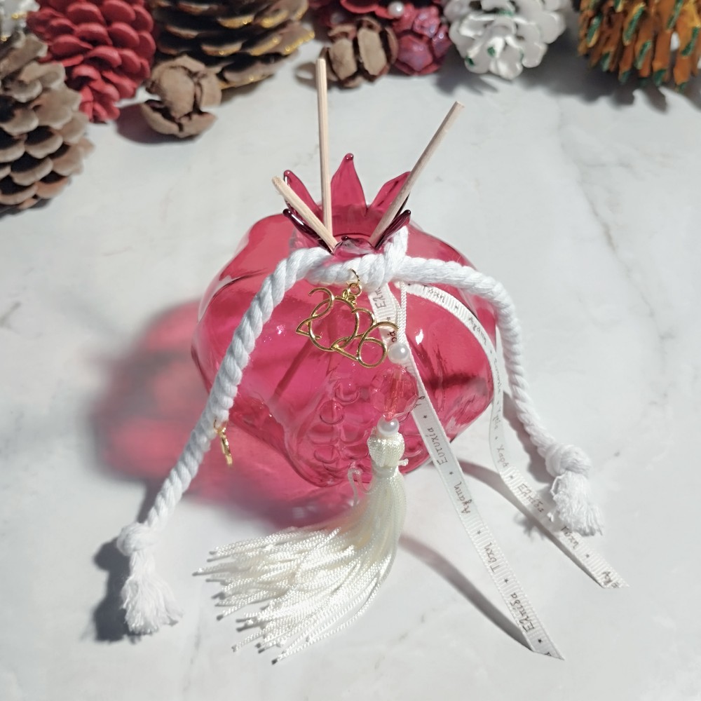 Γούρι 2026 Επιτραπέζιο Γυάλινο κόκκινο Ρόδι με Αρωματικά Στικ