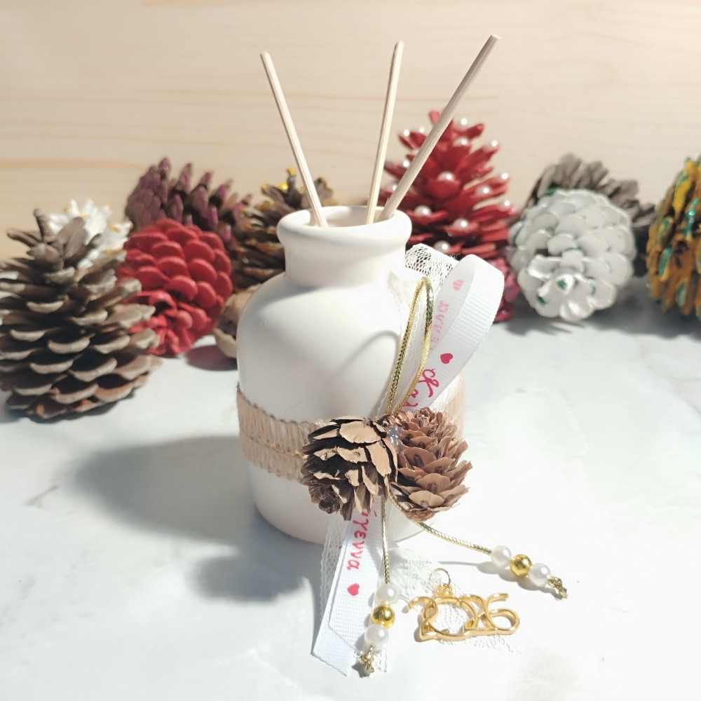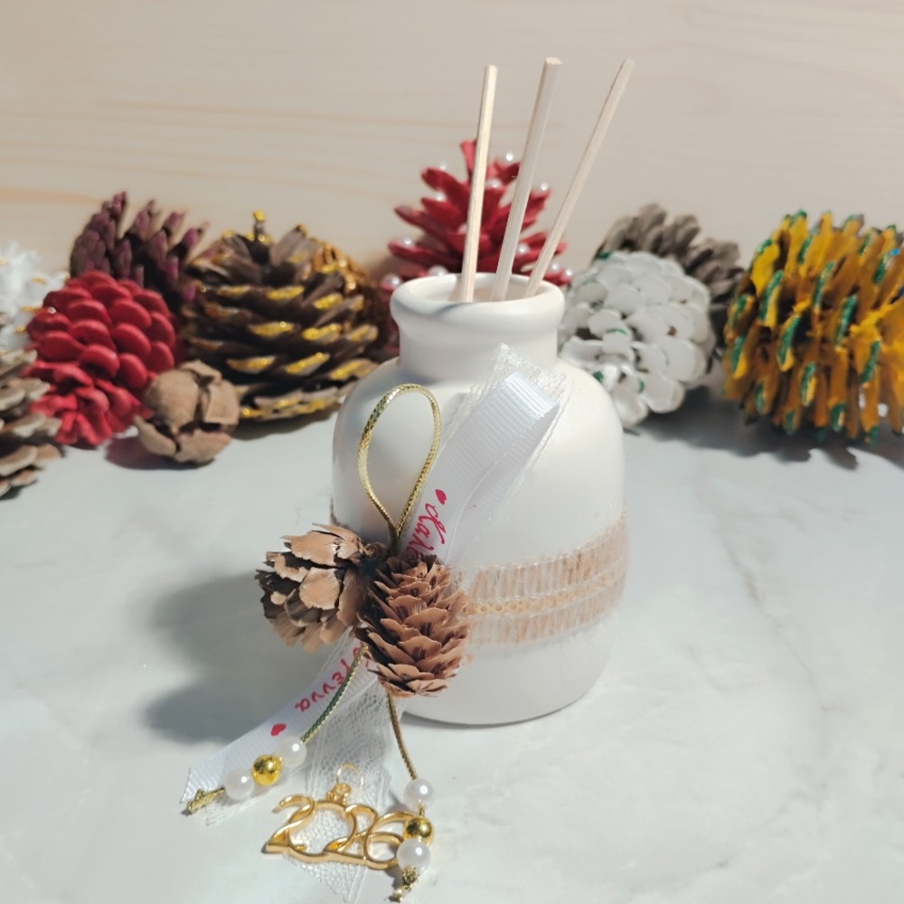 Γούρι 2026 Επιτραπέζιο Κεραμικό λευκό Βάζο με Αρωματικά Στικ
