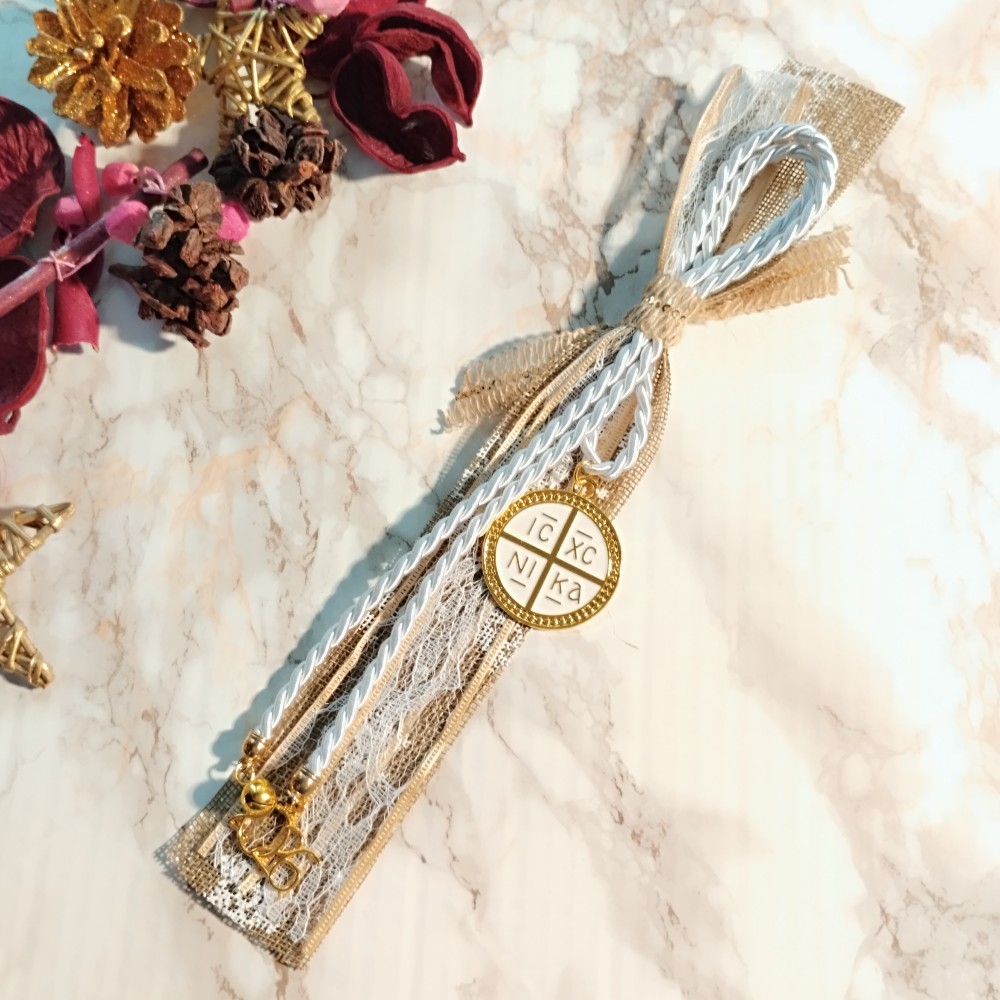 Γούρι 2026 με χρυσό μεταλλικό Κωνσταντινάτο με λευκό Σμάλτο