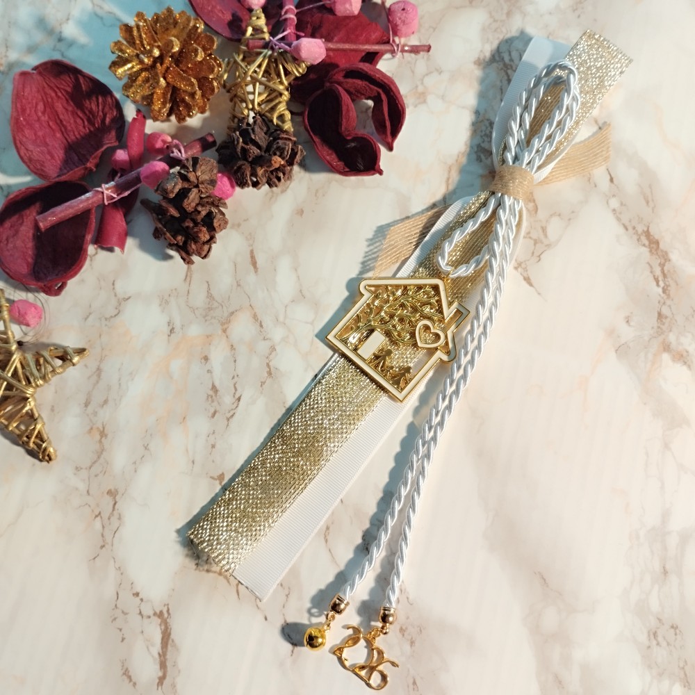 Γούρι 2026 Μεταλλικό χρυσό Σπίτι Οικογένεια με λευκό Σμάλτο
