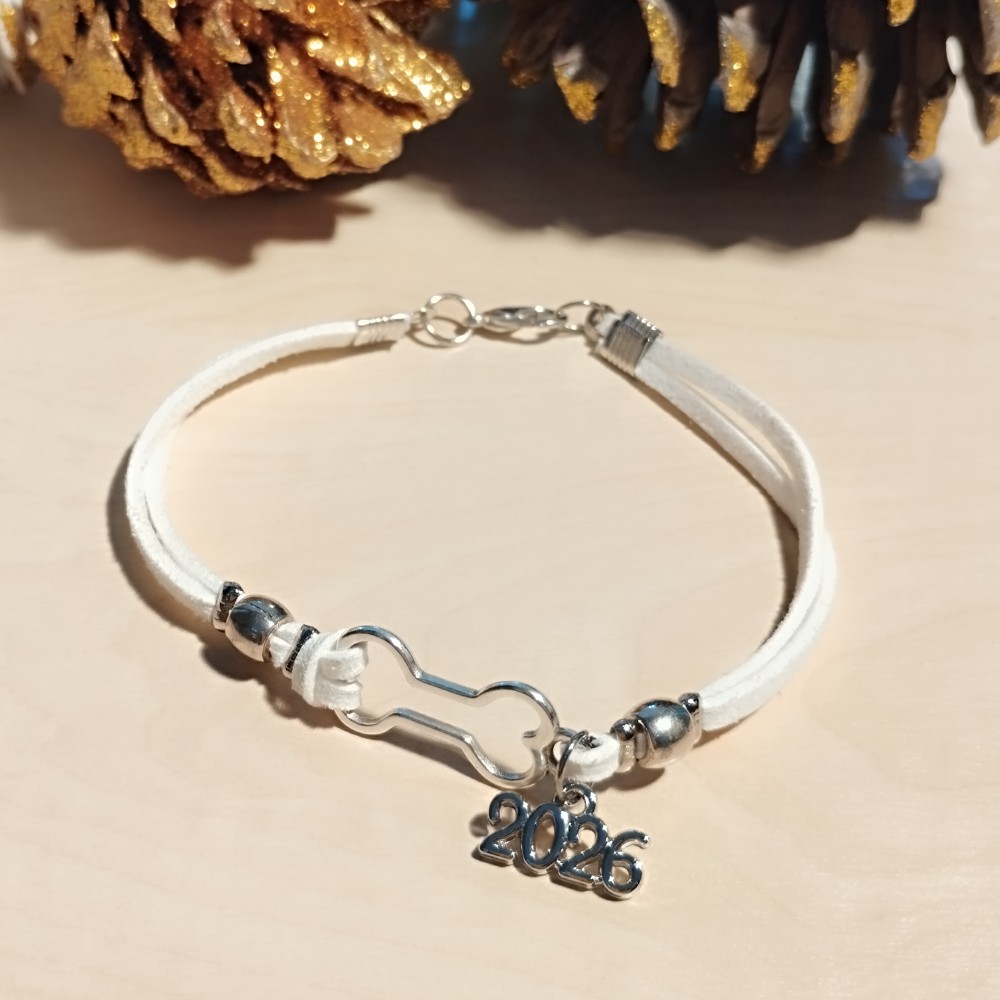 Βραχιόλι Γούρι 2026 επάργυρο Κόκαλο Σκύλου σε λευκό Σουέτ Δέρμα