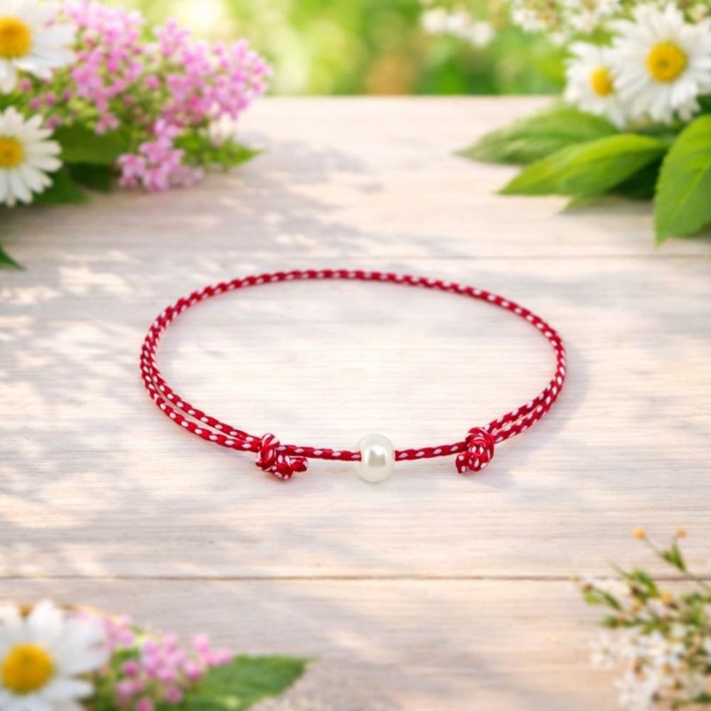 Οικονομικό χειροποίητο Μαρτάκι με πέρλα από ακανόνιστο μαργαριτάρι σε εκρού χρώμα.