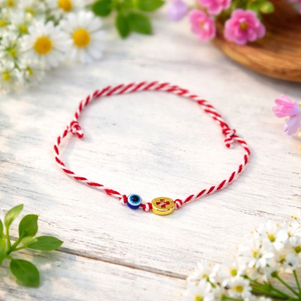 Μάρτης με χρυσό Διαμπερές Σταυρό και μπλε Μάτι