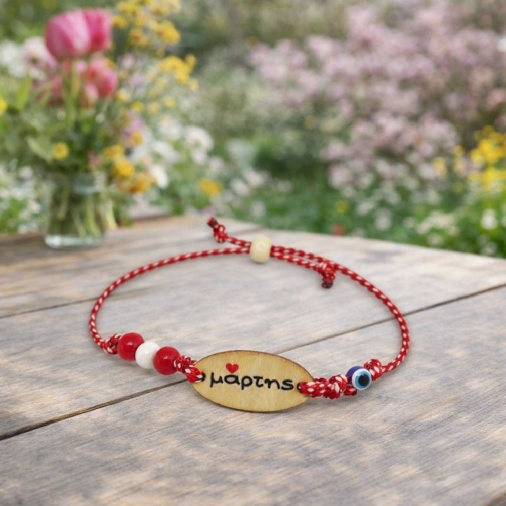 Οικονομικό χειροποίητο Μαρτάκι με ξύλινο οβάλ στοιχείο 2,8εκ.