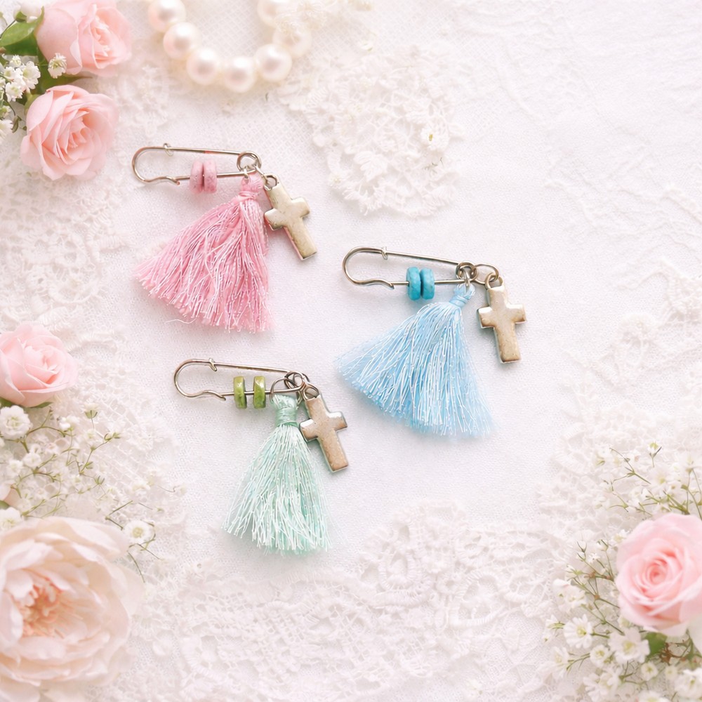 Μαρτυρικά Βάπτισης Πέτου με Ασημί Σταυρό και Φούντα