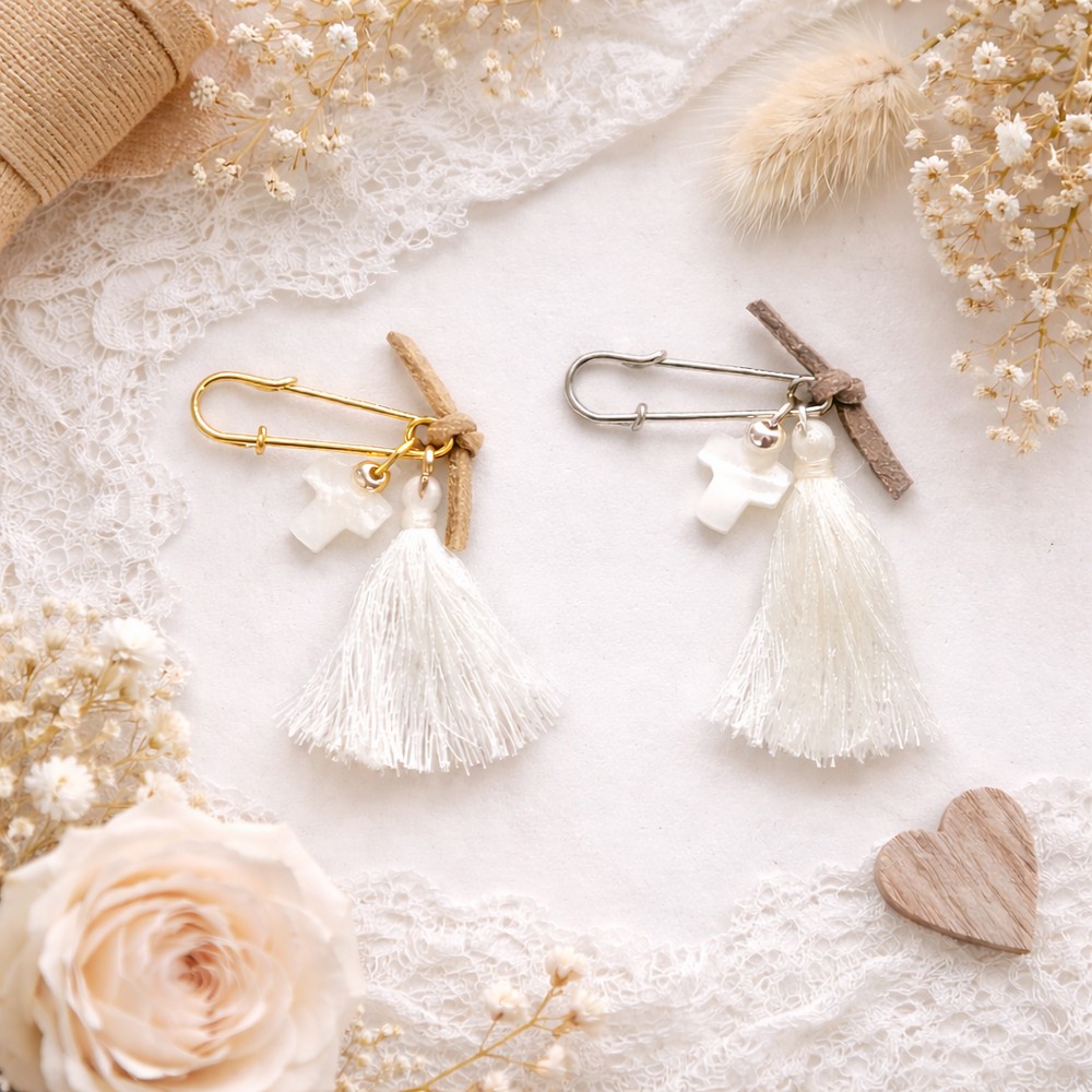 Με λευκό σταυρό από φίλντισι και λευκή φούντα.