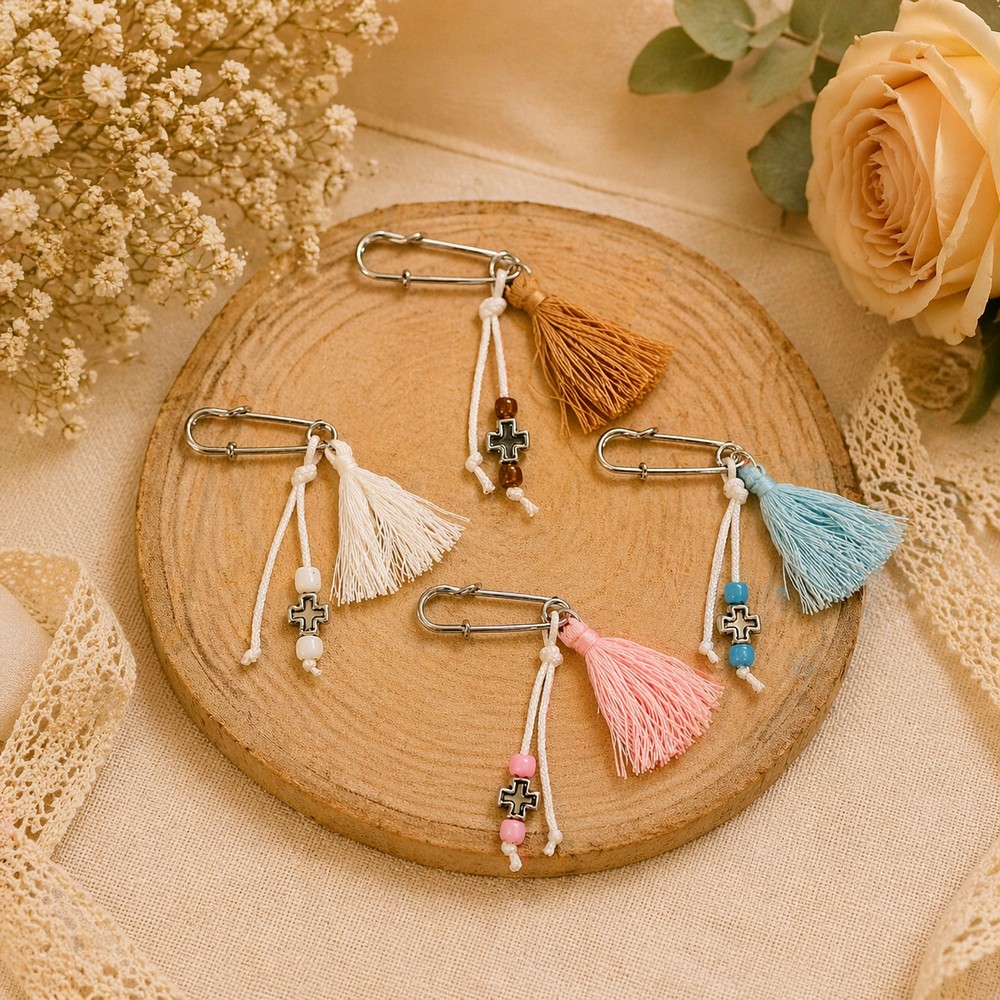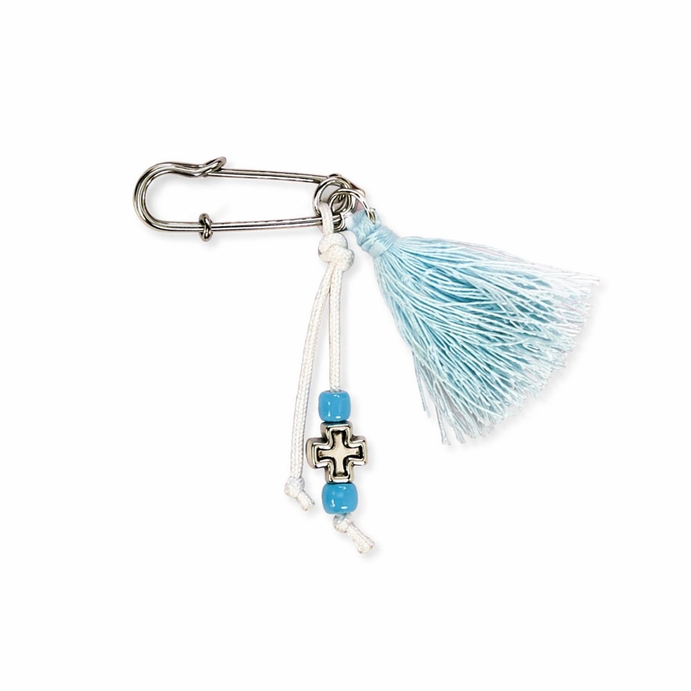 Μαρτυρικά Βάπτισης Πέτου με πλακέ Σταυρό και Κορδέλα Ευχών σε Καρφίτσα
