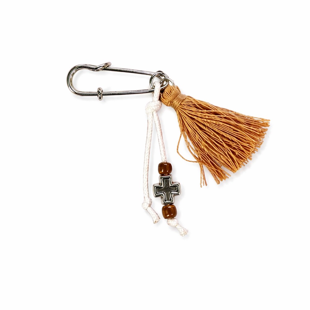 Μαρτυρικά Βάπτισης Πέτου με Σταυρό και φούντα σε φυσικό σουέτ δέρμα