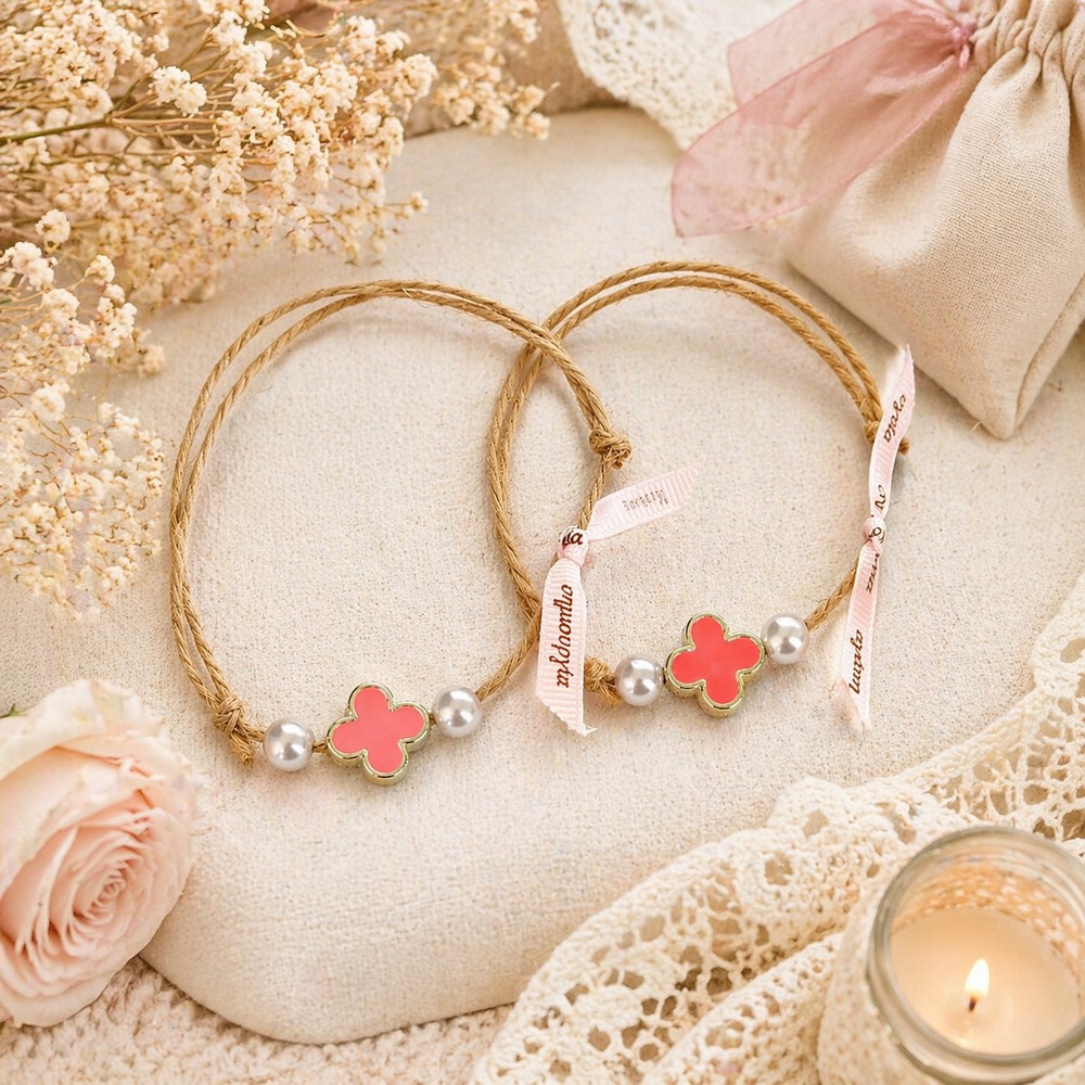 Στολισμένο με λευκές πέρλες και κορδέλα ευχών.