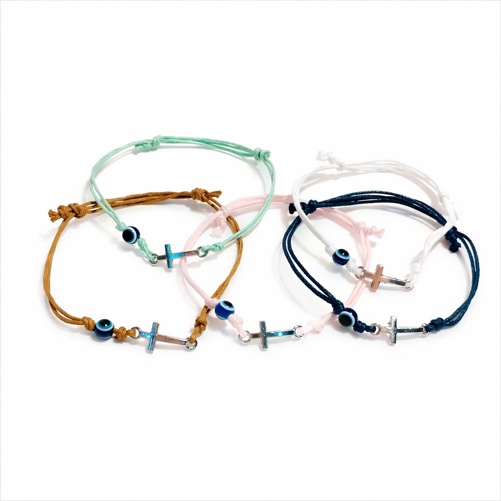Με κορδόνι σε 5 διαθέσιμα χρώματα. Με ασημί σταυρό.
