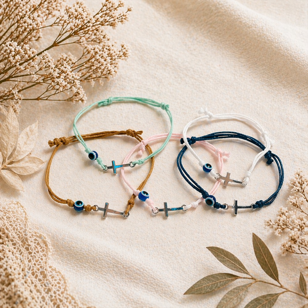 Μαρτυρικά Βάπτισης Βραχιόλι με Ασημί Σταυρό