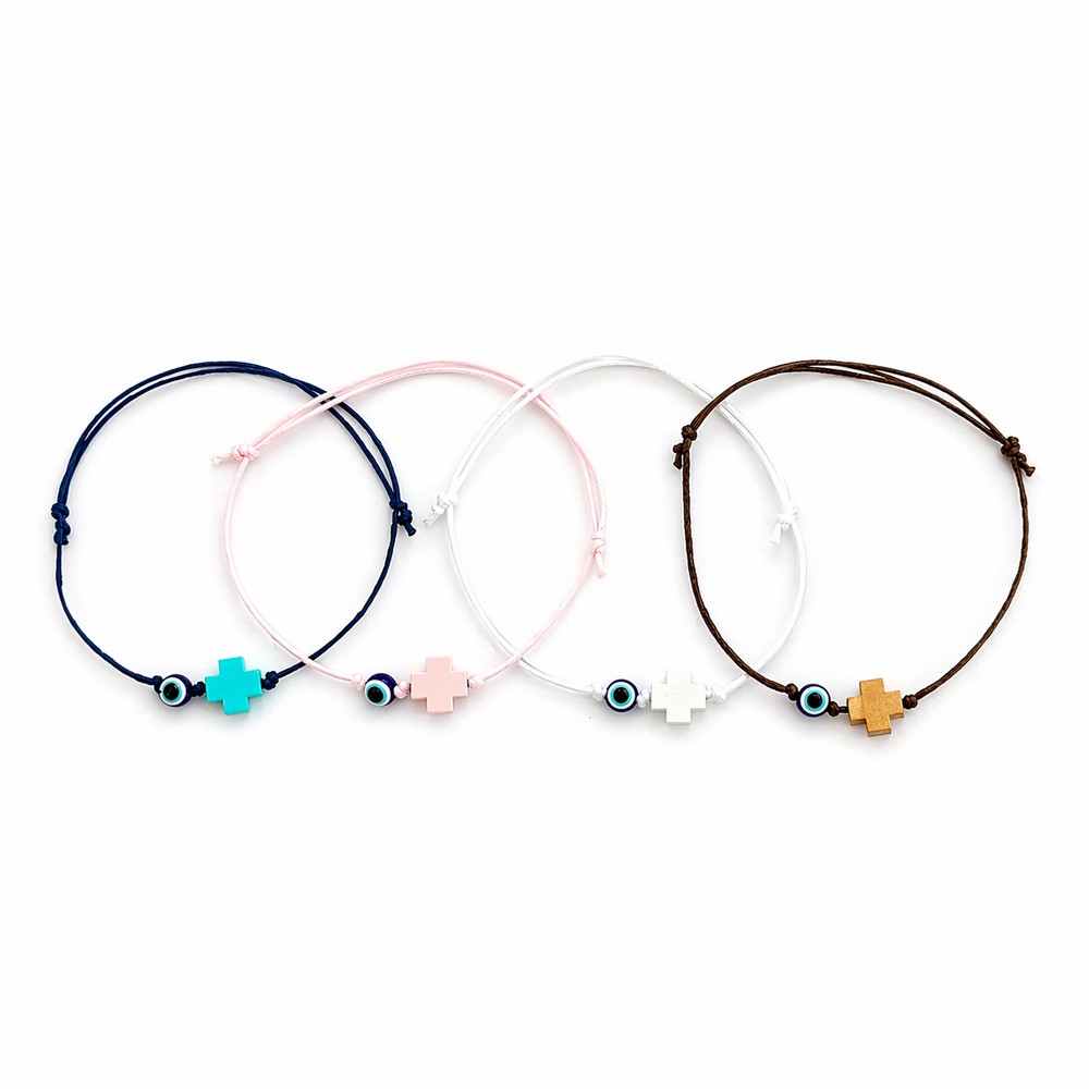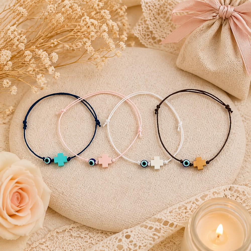 Μαρτυρικά Βάπτισης Βραχιόλι με Ξύλινο πλακέ Σταυρό