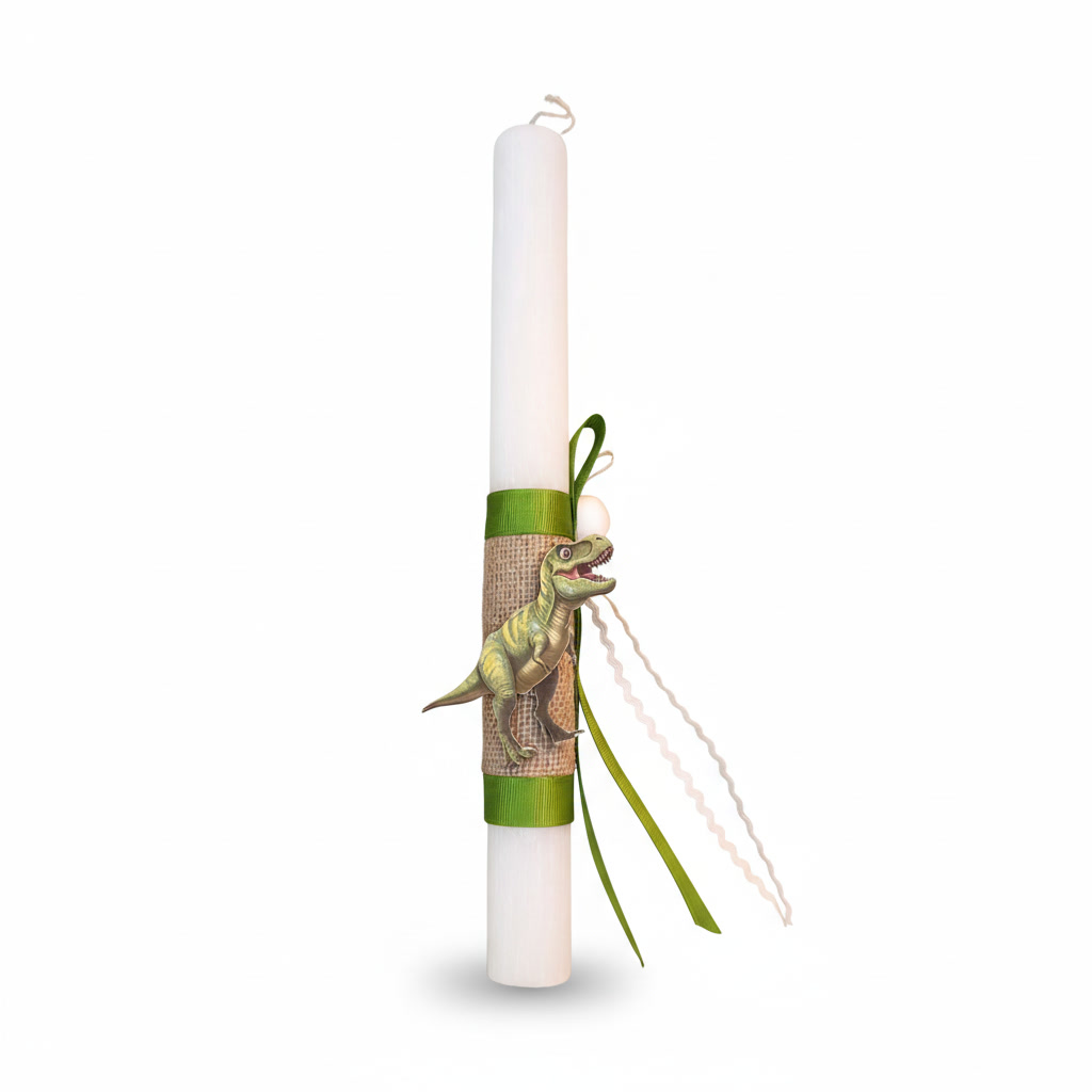 Χειροποίητη Πασχαλινή Λαμπάδα αρωματική με ξύλινο δεινόσαυρο T- REX.