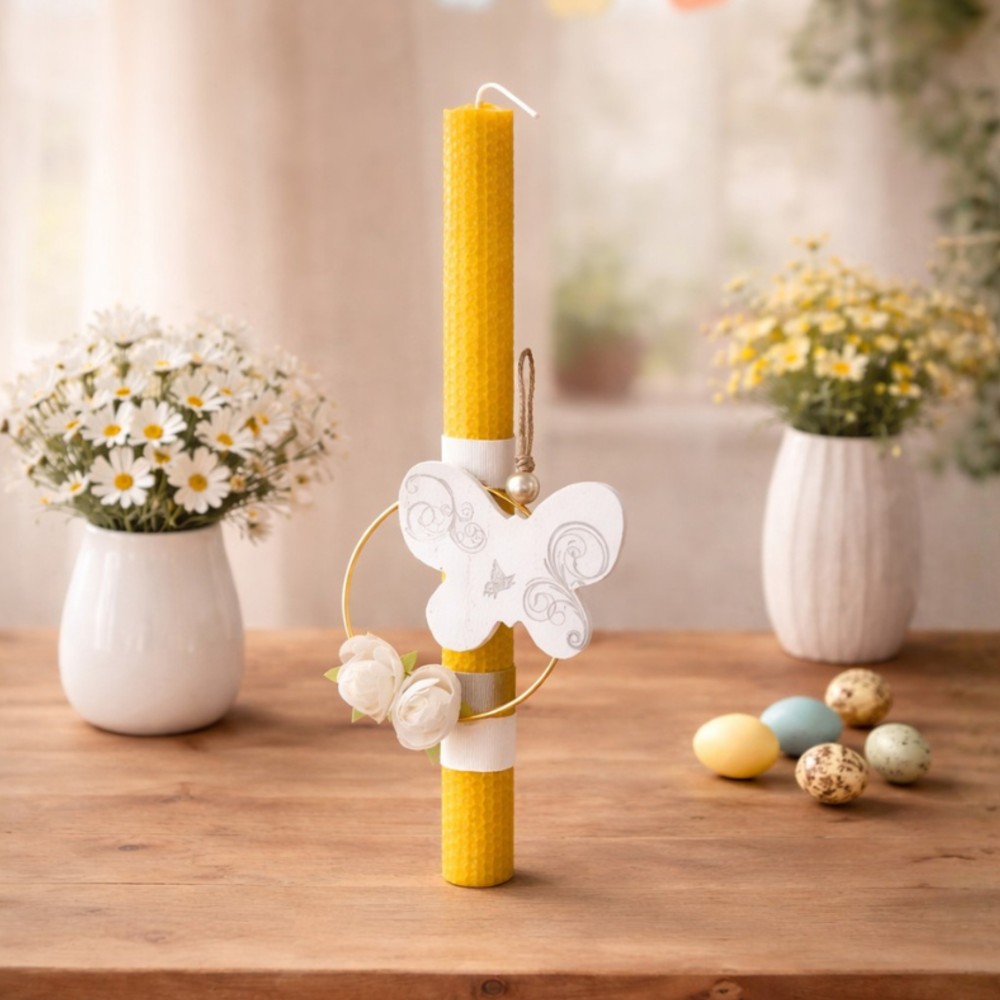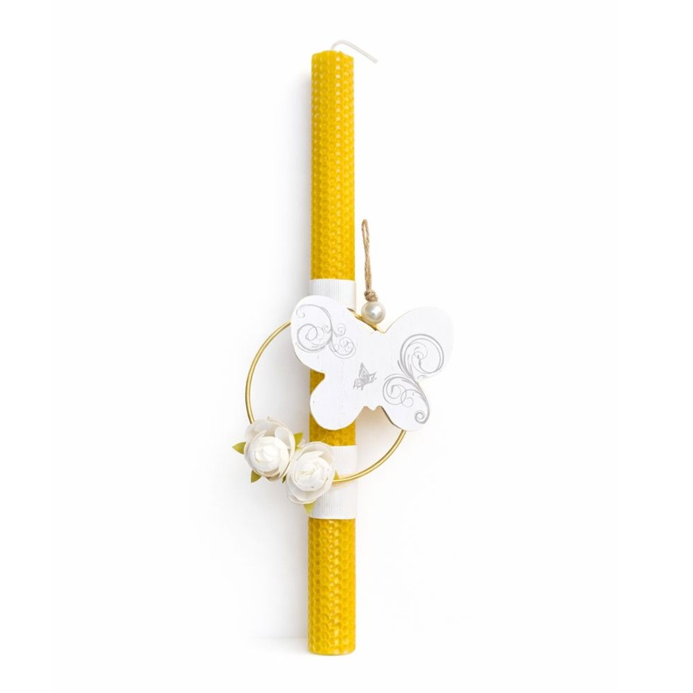 Πασχαλινή Λαμπάδα με Ξύλινη Πεταλούδα σε Φυσικό Μελισσοκέρι