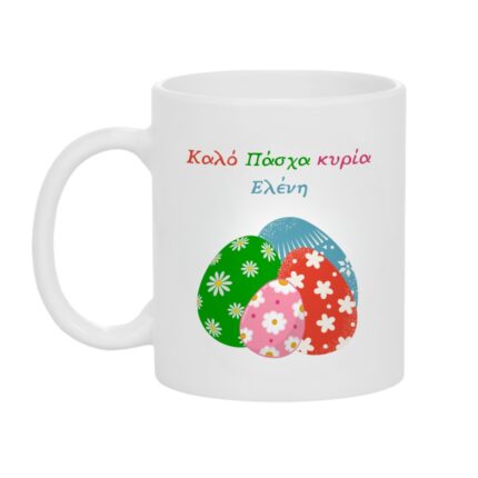 Στολισμένο με χρυσό μεταλλικό “Καλό Πάσχα”.
