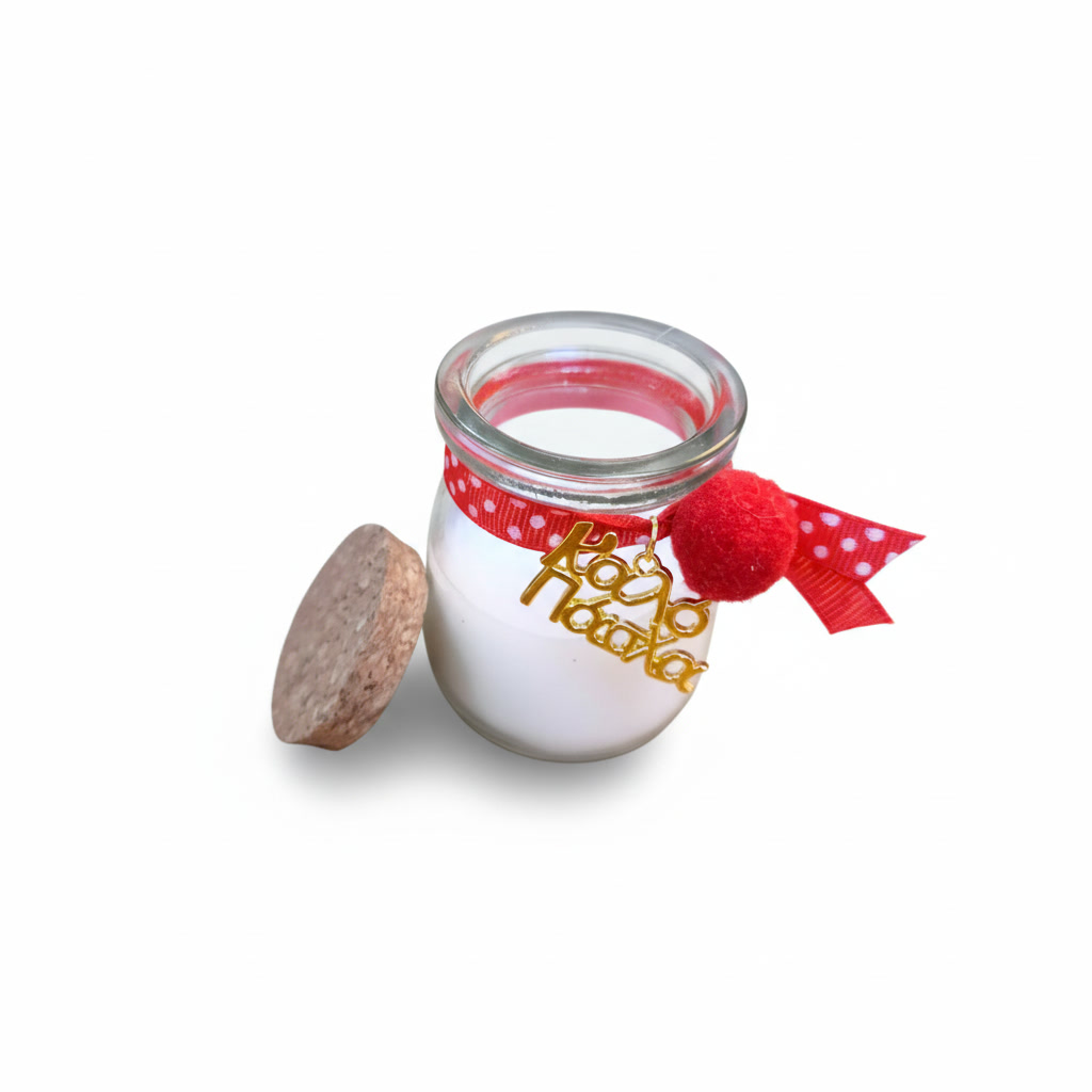 Επιτραπέζιο, γυάλινο βαζάκι με αρωματικό λευκό κερί.