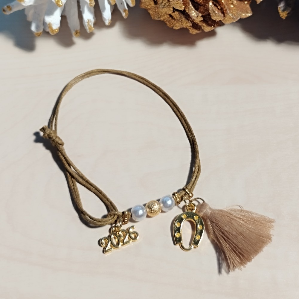 Βραχιόλι Γούρι 2026 με χρυσό Πέταλο και κορδόνι