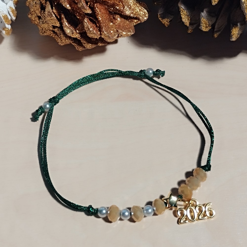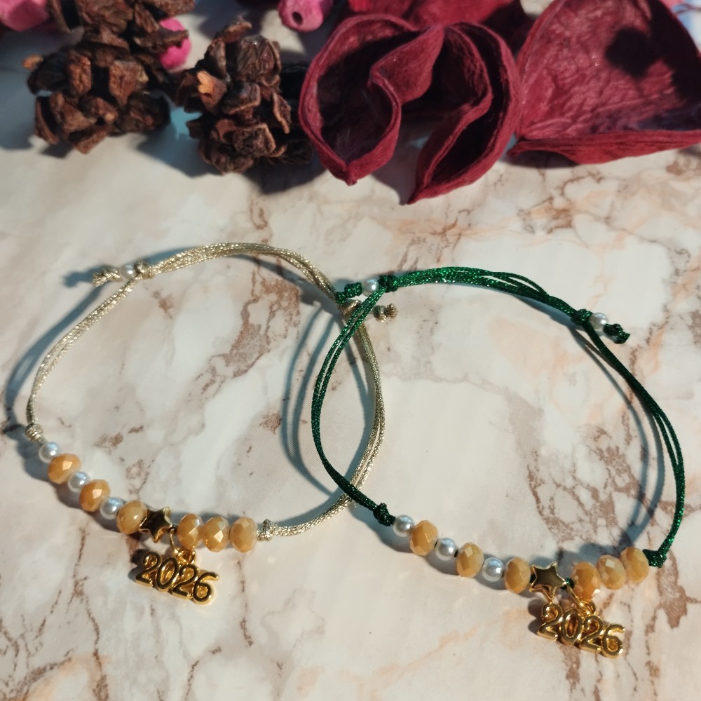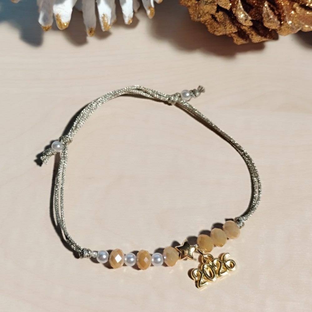 Βραχιόλι Γούρι 2026 με Γυαλιστερό κορδόνι Πέρλες και Αστέρι