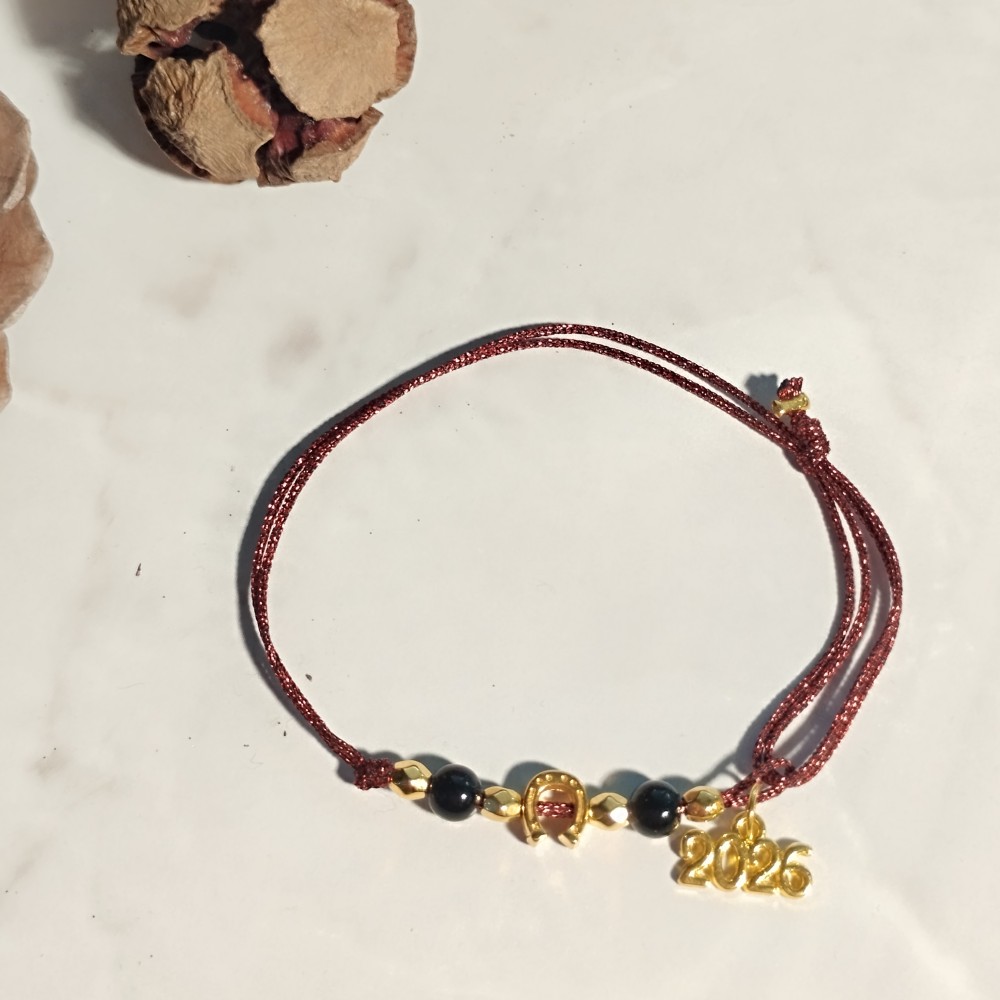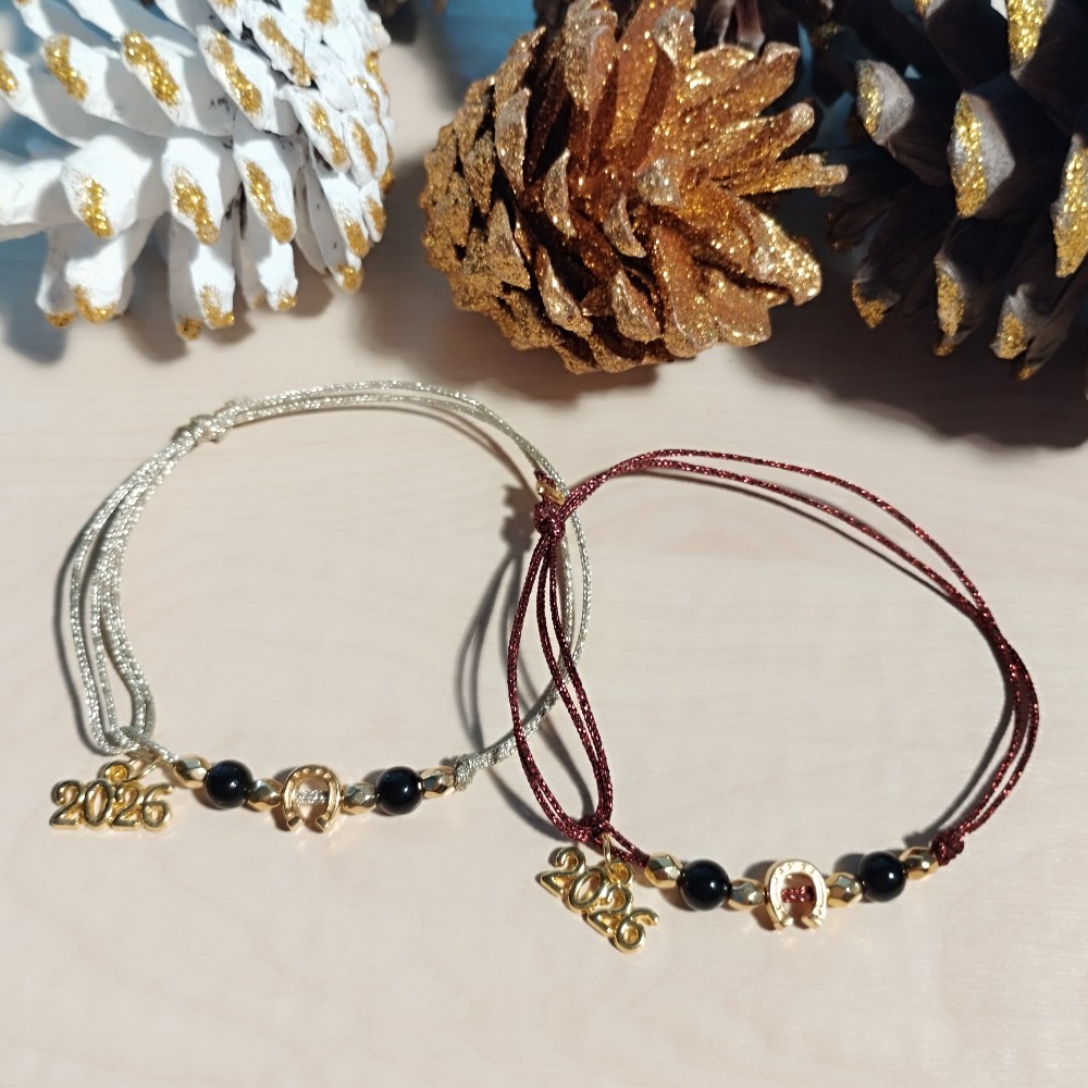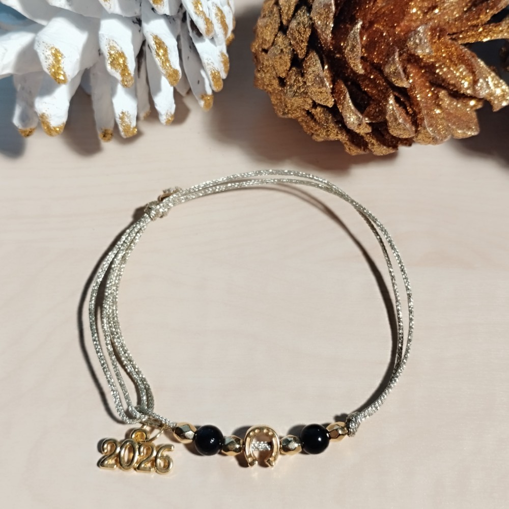 Οικονομικό χειροποίητο Γούρι 2026 βραχιόλι με επίχρυσό πέταλο, αυξομειούμενο.