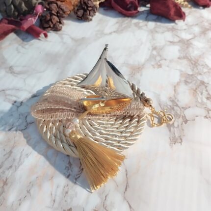Μαρτυρικά Βάπτισης Μπρελόκ με Χρυσό Κωνσταντινάτο και Γυαλιστερή τετράγωνη Χάντρα