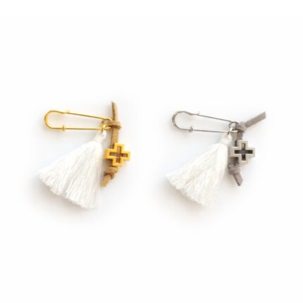 Μαρτυρικά Βάπτισης Πέτου με πλακέ Σταυρό και Κορδέλα Ευχών σε Καρφίτσα